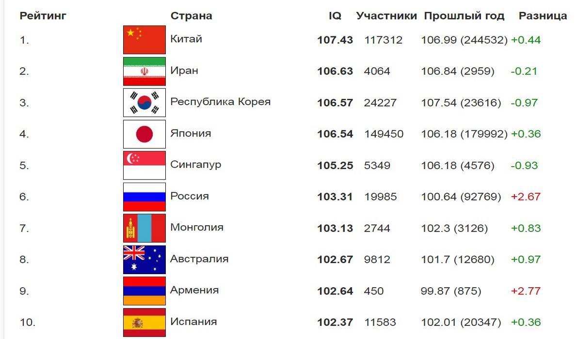 Короче, смотрите список, развлекайтесь (https://international-iq-test.com/ru/test/IQ_by_country ). Выходные, как-никак. С Новым Годом ещё раз!