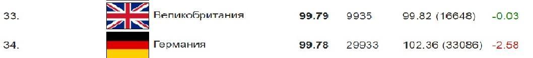 С англичанами всё понятно – у них традиции, и с изменениями всё плохо. А вот немцы за прошедший год отупели на такую рекордную цифру, что исследователи вынуждены были выделить её красным цветом! Тут, есть над чем задуматься хотя бы тем, кому этот процесс ещё доступен.