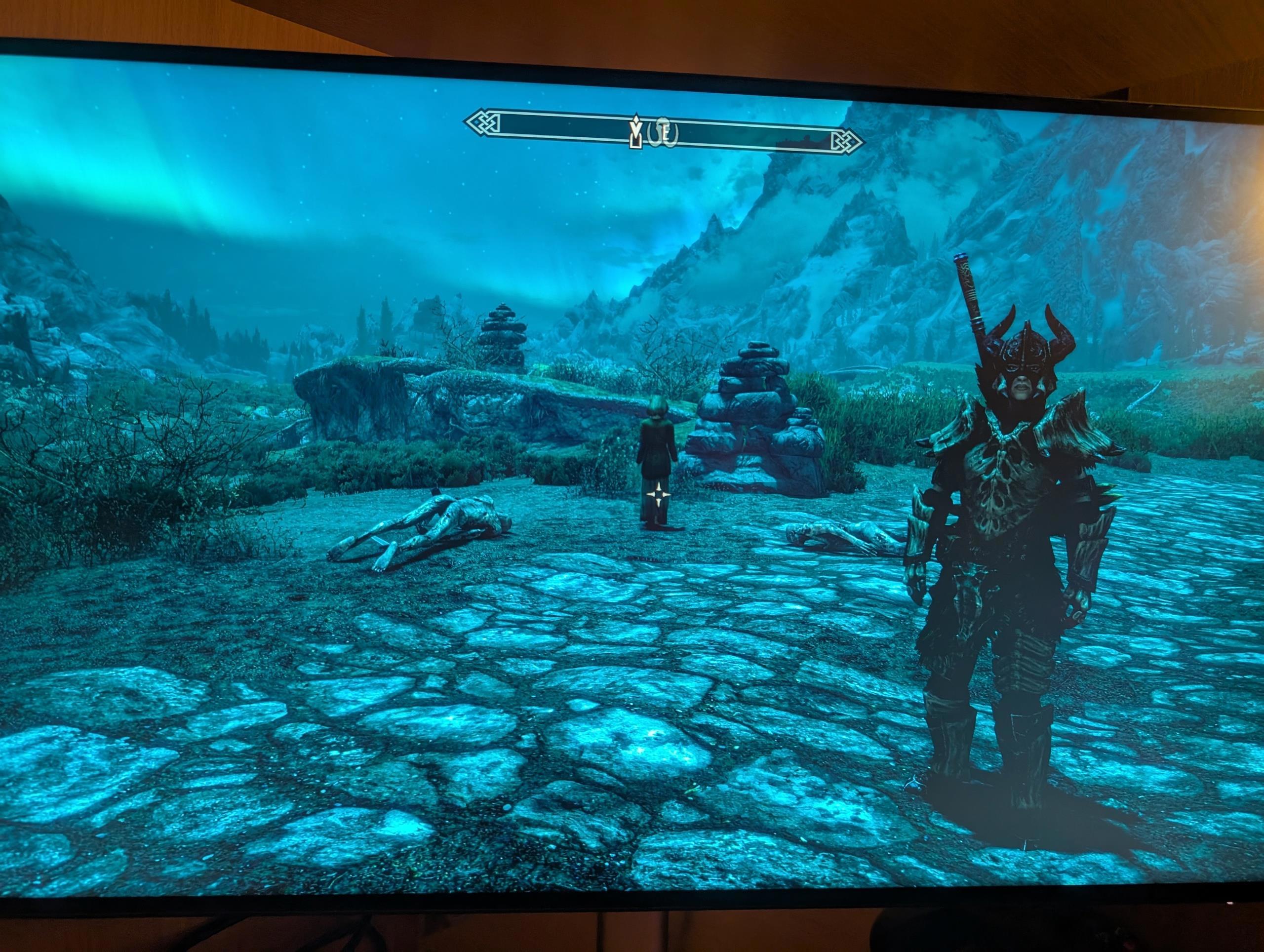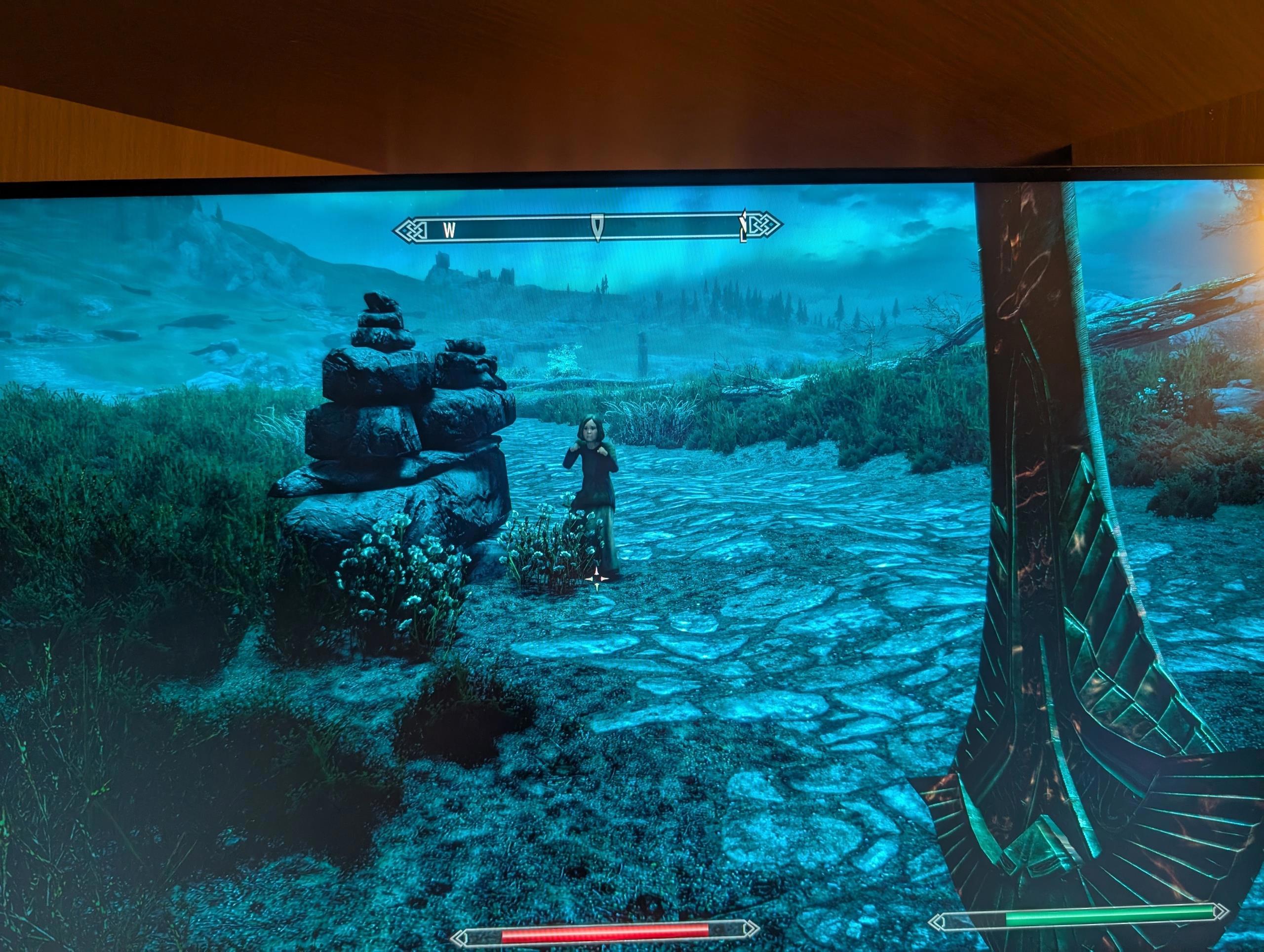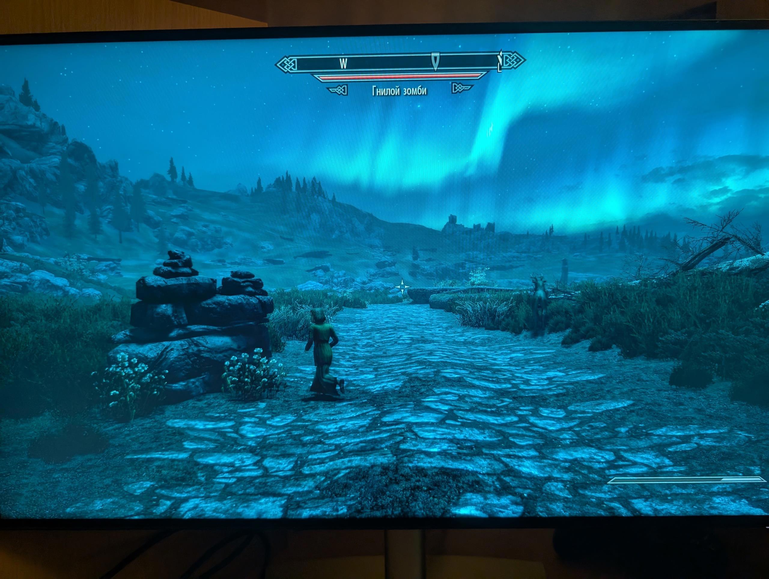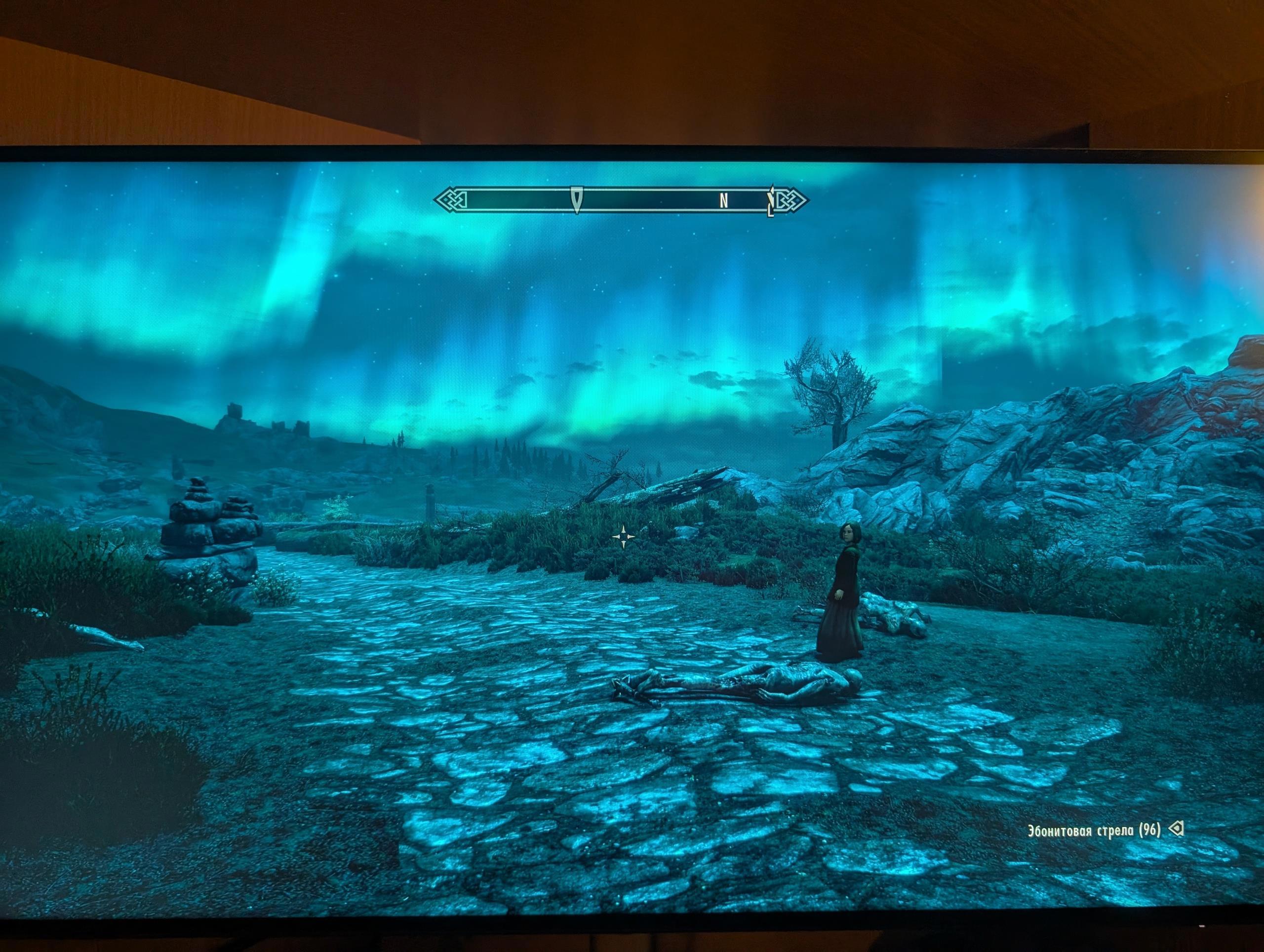 Я возвращалась с какого-то очередного задания. Выползла из пещеры, а меня встречает безумной красоты северное сияние! Я его сфотографировала (мне скоро надо будет выкладывать блог с видами скайримных небес, настолько тут красиво!), ну и поперлась дальше.