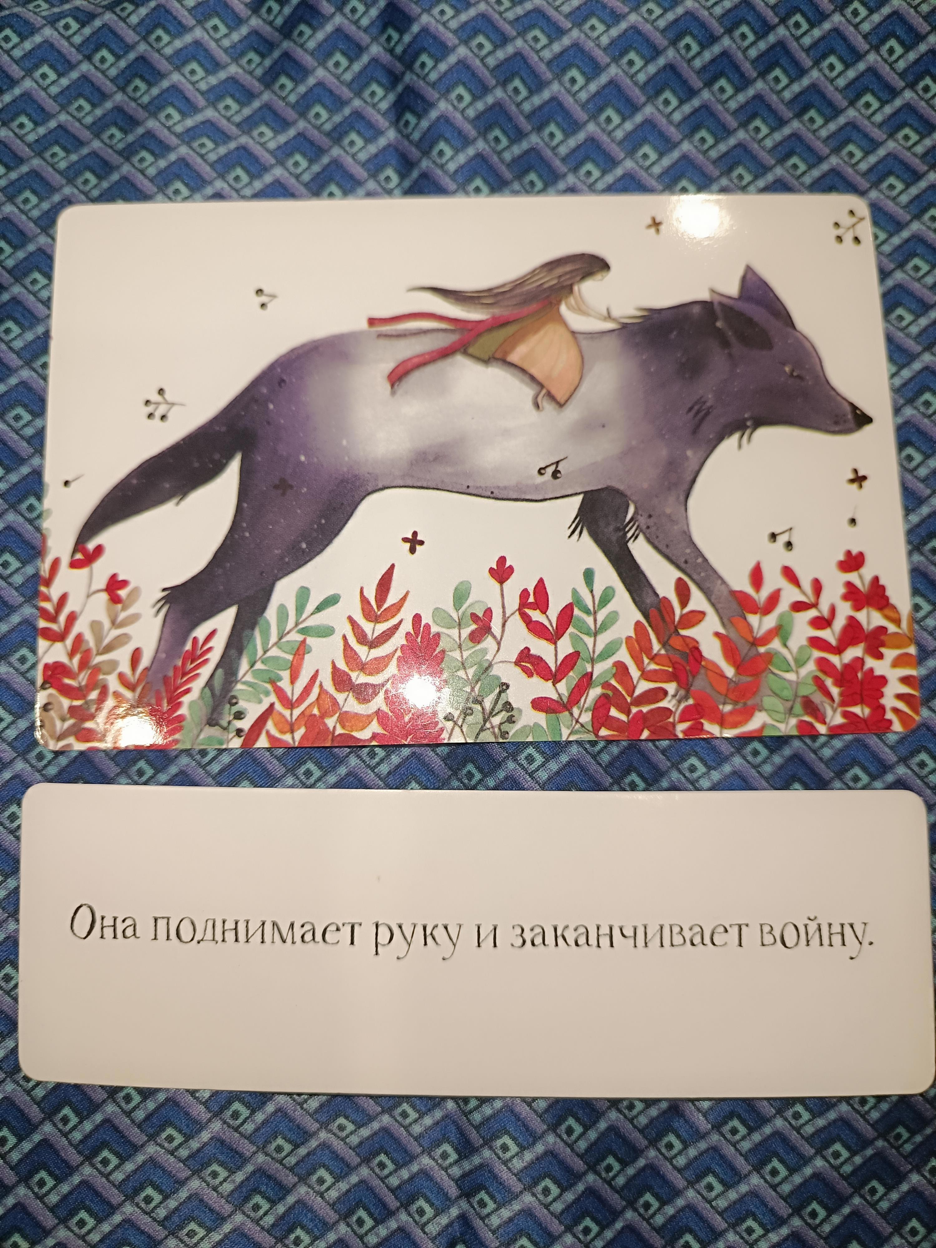 Достав любимые метафорические карты, Ари тасует их с умилением наблюдая за непосредственной гостьей. Она вытягивает карту и с интересом её разглядывает.