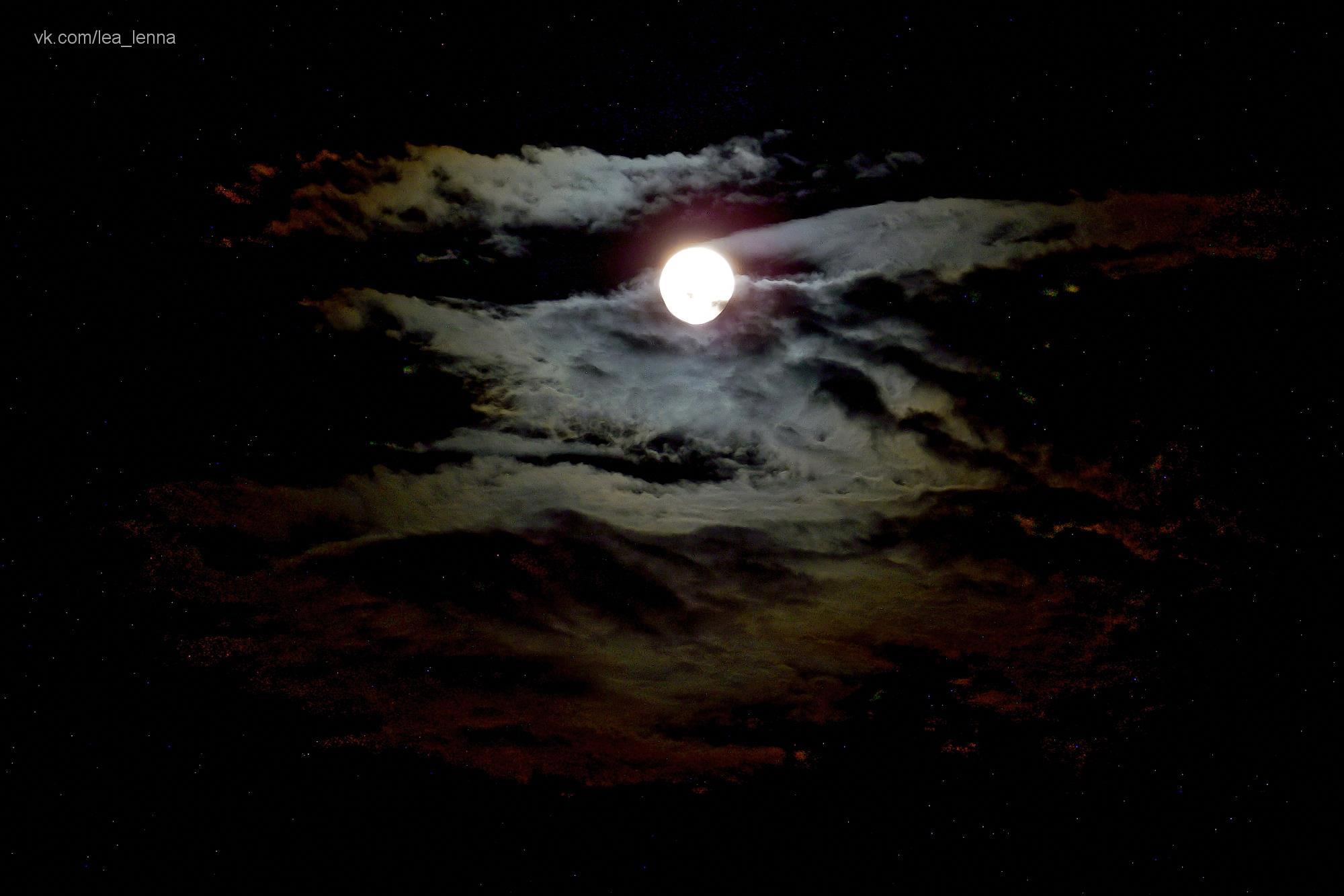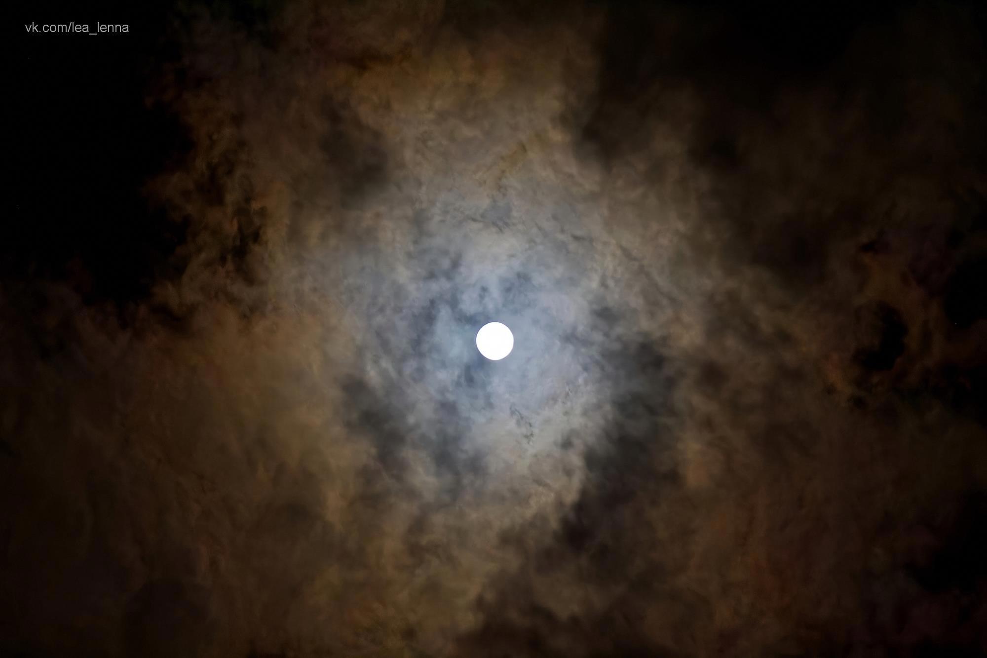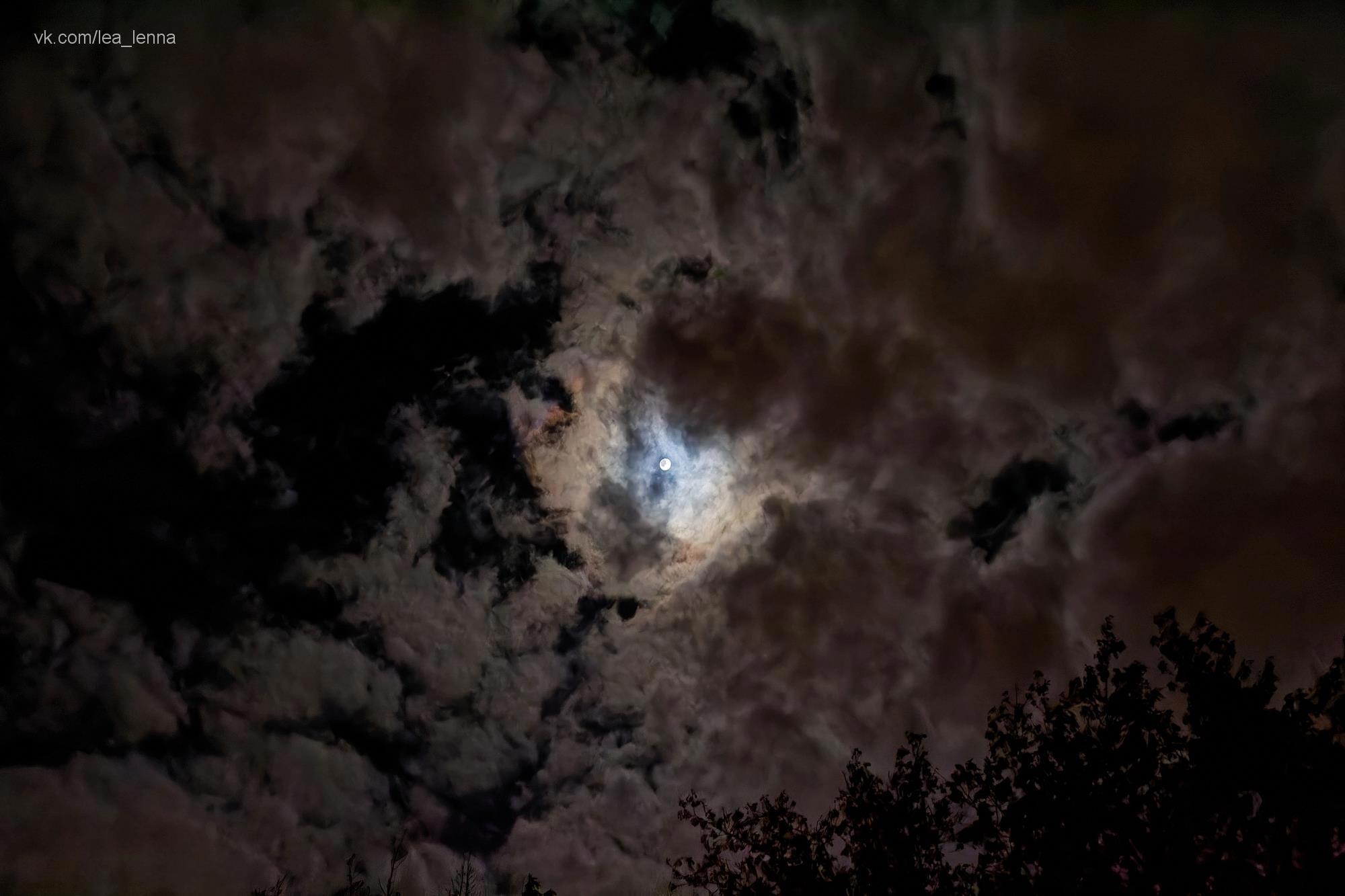 Иногда облака выстраиваются правильно и лунный венец становится радужным. Очень прекрасные в ту ночь творились на небе картины.