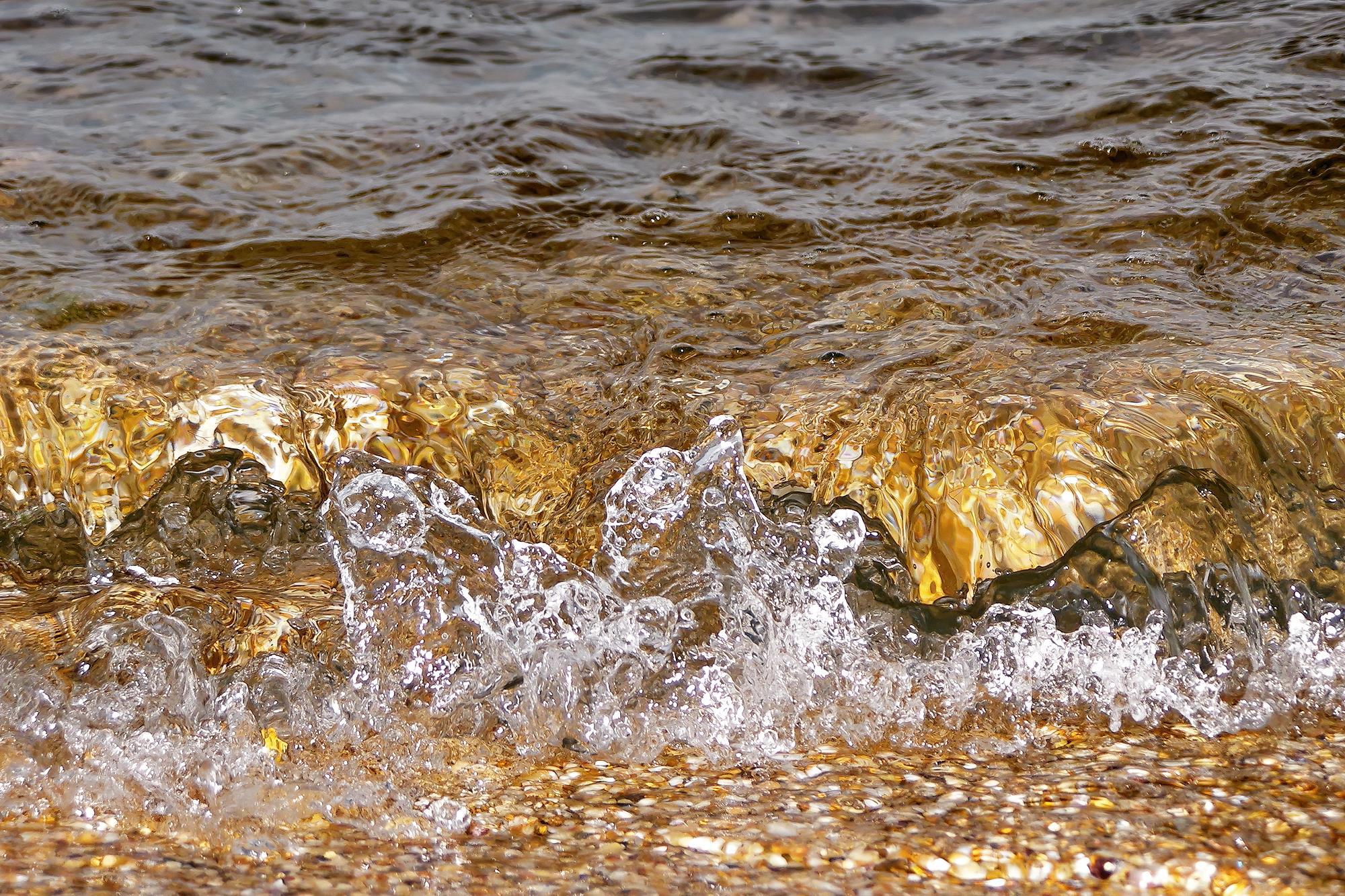 Прибой, волны, любое движение воды, особенно если фактура дна под ней сложная, в свете вспышки дают очаровательные мозаики с радужными фрагментами. В романе так снимает воду Юджиния, а Женька послушно кидает камешки, создавая узоры.