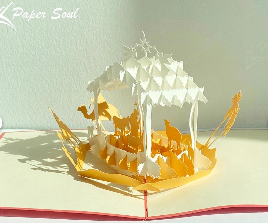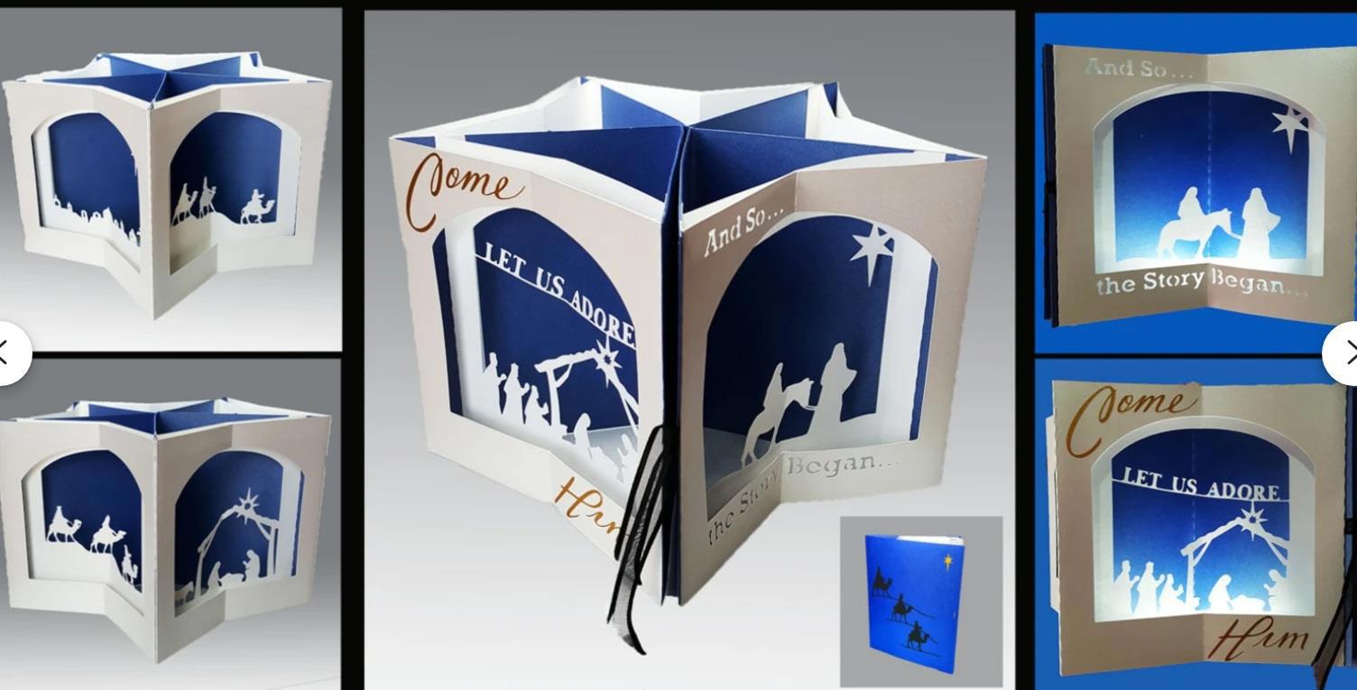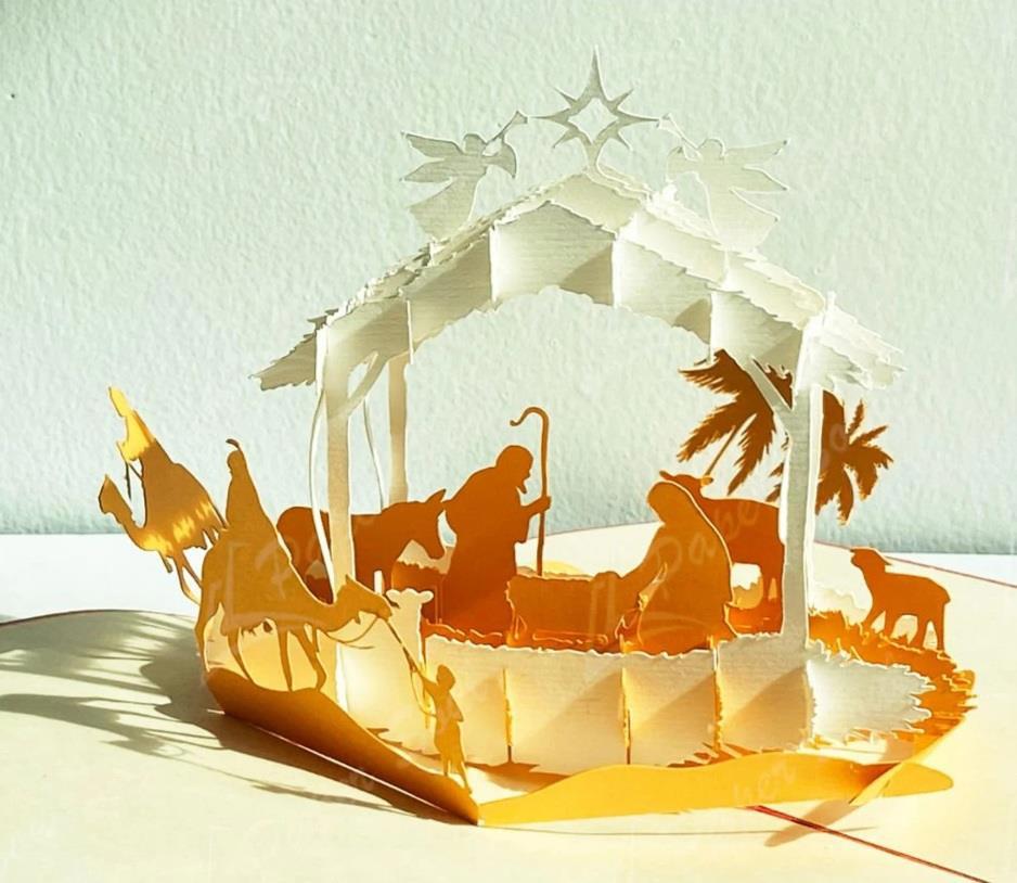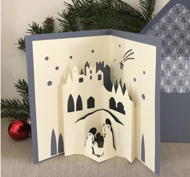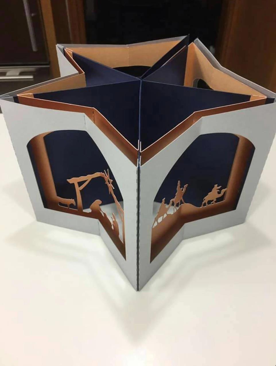 2. Вертеп в поп ап открытках. Это супер простенький поп ап. Но вот такая необычная форма. Почему-то называется карусель.