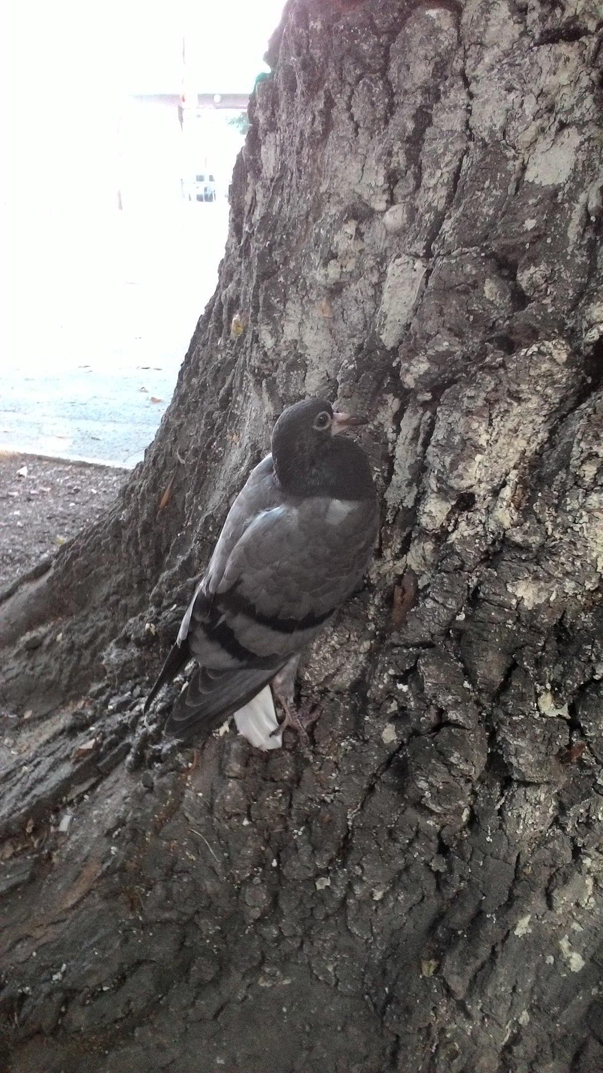 А это голубь. Летать ему явно неохота. Поэтому он гуляет по дереву ножками...