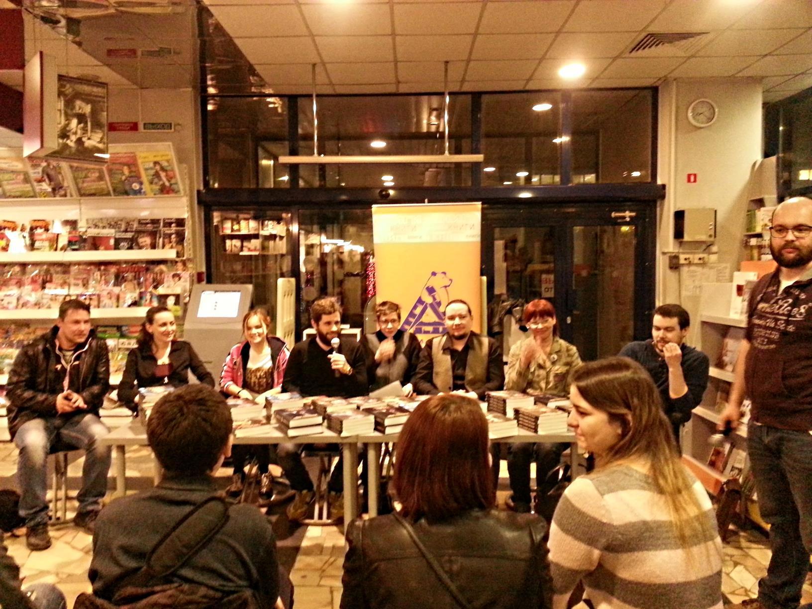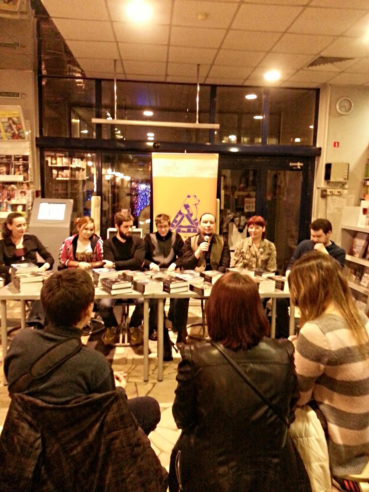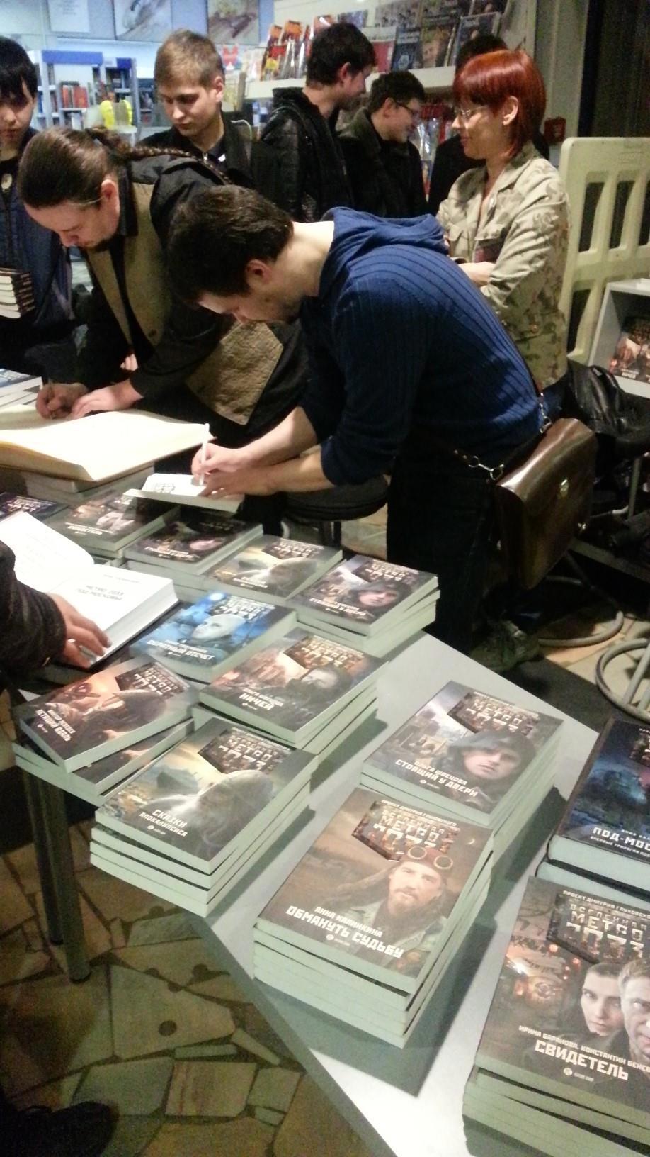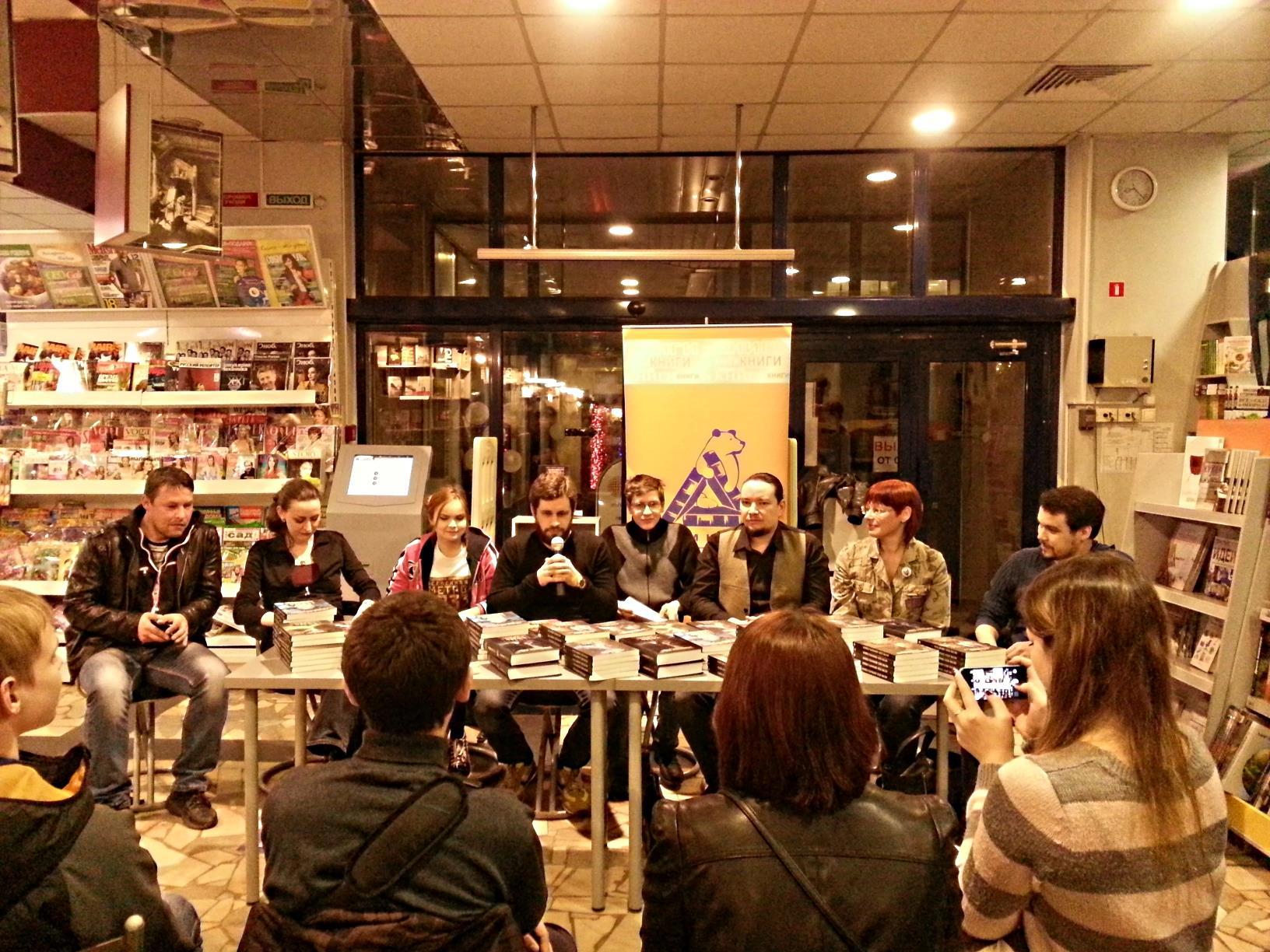 Авторы серии «Вселенная Метро 2033», слева-направо: Юрий Харитонов, Ольга Швецова, Кира Иларионова, Виктор Лебедев, (парень с листком бумаги в руках, к сожалению, забыл его имя, буду признателен, если кто-то напомнит). Далее — я — Таштабанов Ринат, Анна Калинкина и Шимун Врочек.