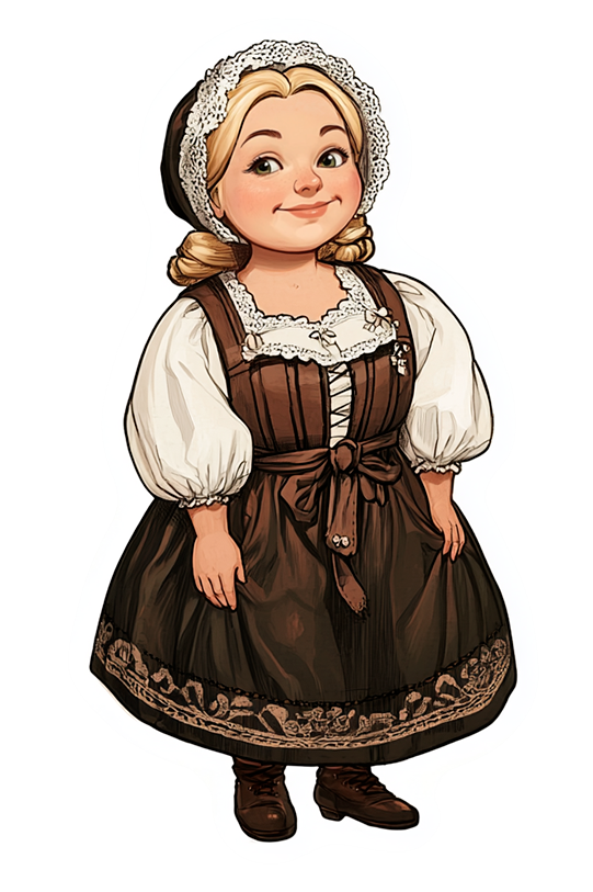 Но я сделаль. Всего какой-то десяток генераций - и Берта, единственная и неповторимая экономка господина Неманича, наконец-то выглядит так, как мне надо. Чиби-версия уже получилась намного проще. (А вот с чиби-Фаркашем я тоже намучилась).