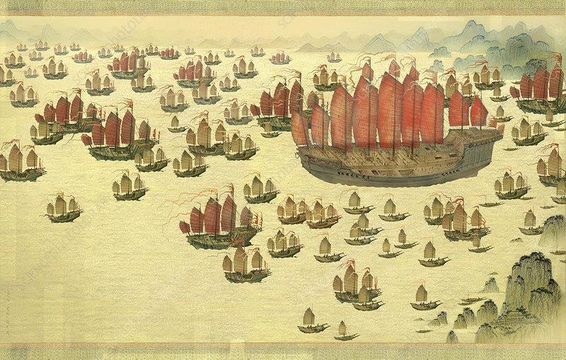 1403 год. В дикой Европе мореплаватели старательно гребут исключительно вдоль берегов своего горного, холодного и бедного полуострова, они панически боятся открытого моря. Великому (тут без иронии) Энрике Мореплавателю всего семь лет. До крутых морских свершений еще жить да жить! И в этом же году свежепосаженный на трон император молодой династии Мин – Юнлэ - говорит: хочу (мост хрустальный) океанский флот. Просто вот щелкнул пальцами – и захотел! Невероятно, но китайцы покорно кивнули и построили!