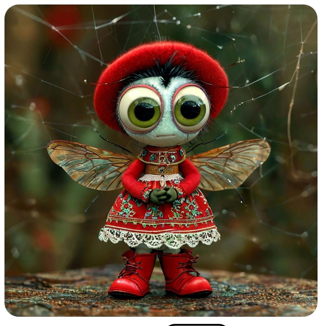 ♀️ сегодня пол дня пыталась сваять муху. Обычную муху в русском народном сарафане и красных сапожках, попавшую в ловушку свежей паутины. И что я получила?