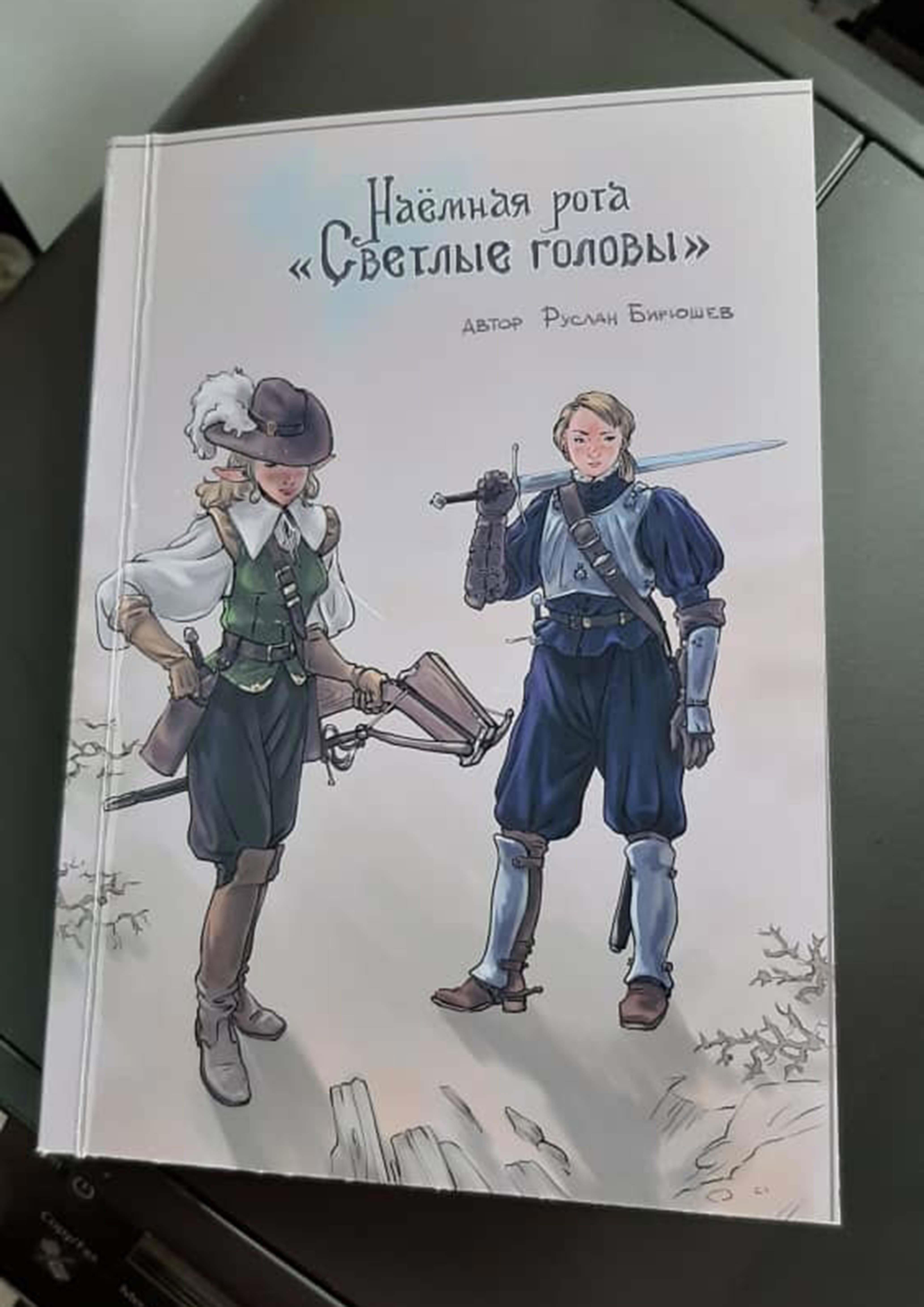 Автор: Руслан БирюшевСегодня типография КГМА напечатала пробный томик романа "Наёмная рота "Светлые головы". Я дал некоторые уточнения (например, чуть сместить рисунок на обложке и указать имя художника на обороте), но в целом одобрил макет и заказал 12 томиков. Мне было обещано, что они будут готовы к пятнице. Вот присланные мне из типографии снимки:
