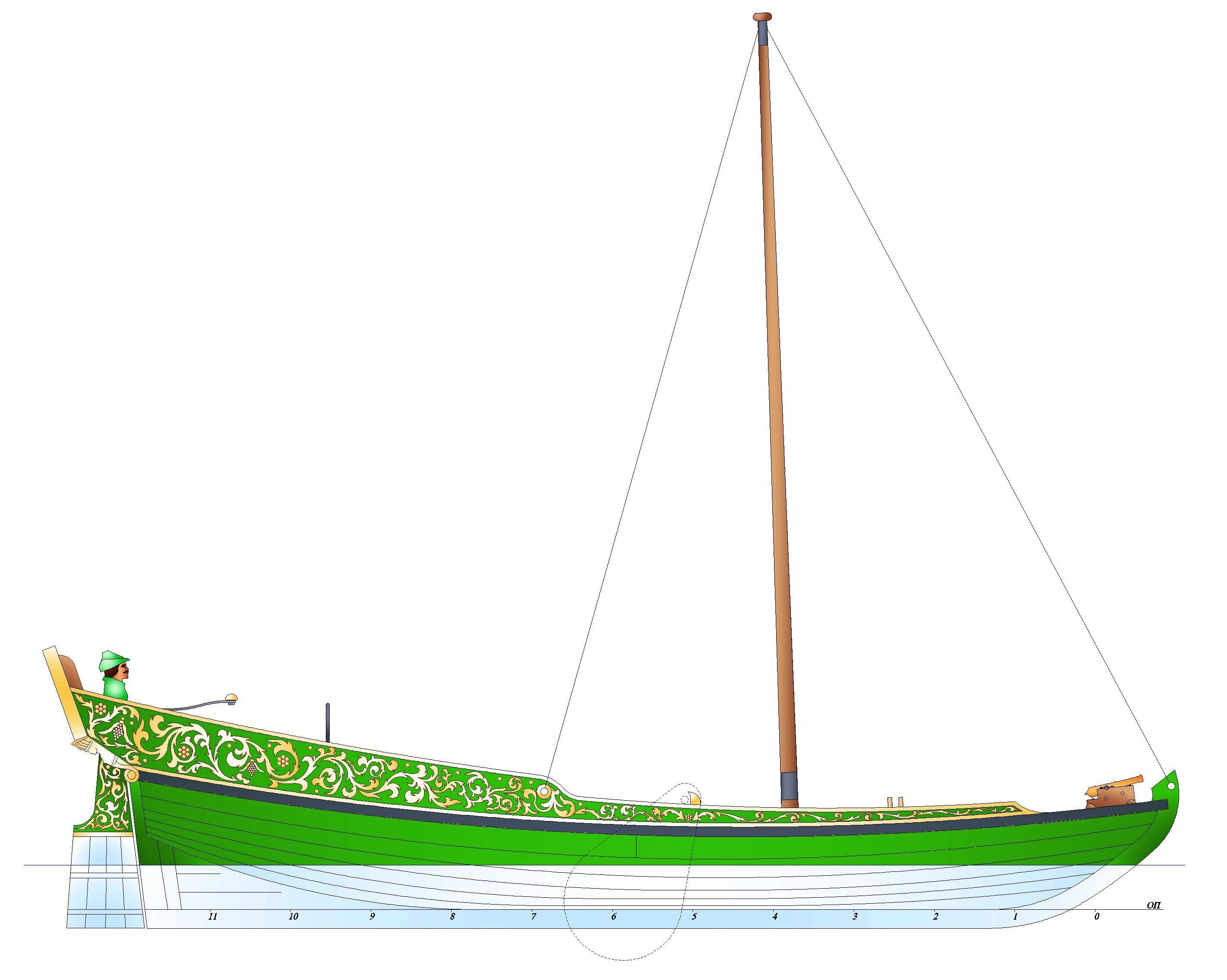 Особенно любопытно в плане противоречивости самой фигуры Петра 1 выглядят два принадлежащий ему маленьких судна. В своё время Император некоторое время прожил в Астрахани. Как водится провёл здесь некоторые новации. В частности повелел чистить городские протоки, построил Адмиралтейство, велел завести «Птичий двор» – получилось что-то среднее между зоопарком и питомником. Повелел немного выше по Волге высадить дубовую рощу, пояснив, что дерево доброе для флота России весьма не лишним будет. Рощу действительно посадили, и наперекор природе вырастили. Её уничтожили уже в советское время, когда нашим реставраторам понадобилось дерево для того, чтобы восстановить паркет в царских дворцах в Питере. Но без воды Императору было как-то скучно, да и перемещаться в наших краях легче всего по воде, поэтому для его нужд было изготовлено два малых судна. Их долго берегли и утрачены они были уже в 20 веке. Одно прозывалось «Плезир-яхтой» и было типичным малым европейским судном. Вот наша реконструкция:
