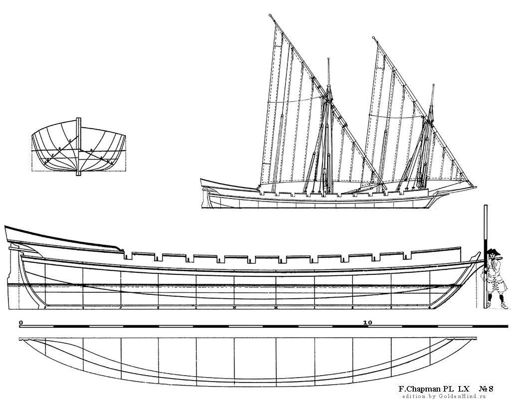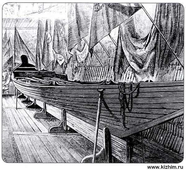 Подробнее здесь:http://kizhim.ru/article/karmannyj-flot-petra-velikogo-chast-i-plezirjahta/ Второе называли ещё проще – лодкой-верейкой. Она была сделана на основе так называемых «островских лодок». По сути – это бударка. Вот она на гравюре уже во время хранения в качестве реликвии: