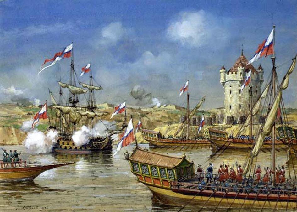 Не бывает знания абсолютного. Всякий специалист по настоящему силён только в каком-то одном направлении. В других он может и ошибаться. Пётр в силу молодости о таких вещах знать не мог, поэтому возжелав сделать всё «как лучше», наломал дров, хотя в целом проявлял не только упорство, но и завидную наблюдательность. Например, создавая армию нового типа, он бездумно собезьянничал, заменив удобную форму стрельцов, созданную на основе народных костюмов и учитывавшую местные условия, на европейский костюм, который потом хоть и корректировался, но не очень успешно. Примерно то же получилось и с флотом. Были скопированы на югах образцы галер, и на высочайшем уровне было указано делать суда непременно точно так же. В общем-то формы у этих кораблей были достаточно хороши. Различия были, но ничего особо важного. На Воронежских верфях такому указу подивились – а чего это менять «шило на мыло»? Ведь принципиальной какой-то разницы между теми галерами и бударами не было. И продолжили делать то, к чему хорошо привыкли, внеся изменения чисто косметического характера. Ну, и называть новые корабли стали «по-ихнему» – если уж царю так захотелось. Старались, спешили, понимали, что серьёзные действия уже не за горами. Грянула битва за Азов.