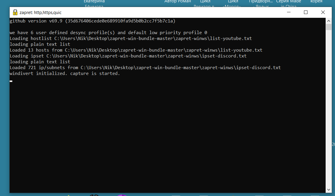 Автор: Николай НиколаевичСредство для Ютуба - ищите в Яндексе zapret-win-bundle-master на GitHub - скачиваете архив, достаете папку и заходите в неё, и в папке zapret-winws запускаете preset_russia ( файл cmd ) - ну там и инструкция по русски есть.... Ютуб начинает работать.