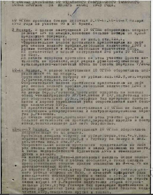 Отчет о боевых действиях 10 гв. отпп