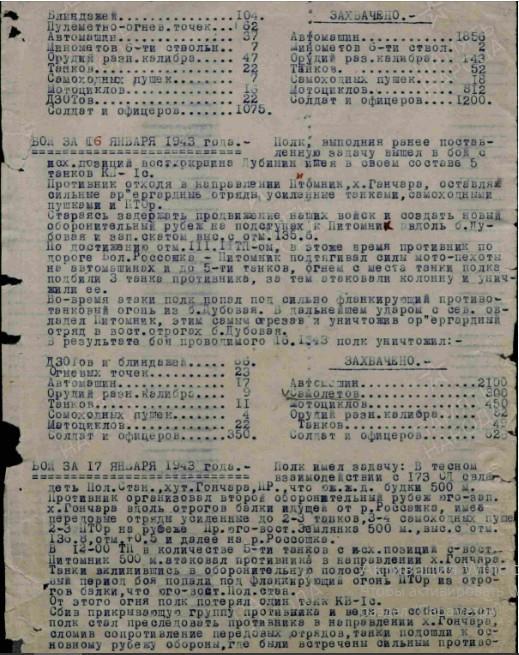 Описывает период с 01.01.1943 по 29.01.1943 г.
