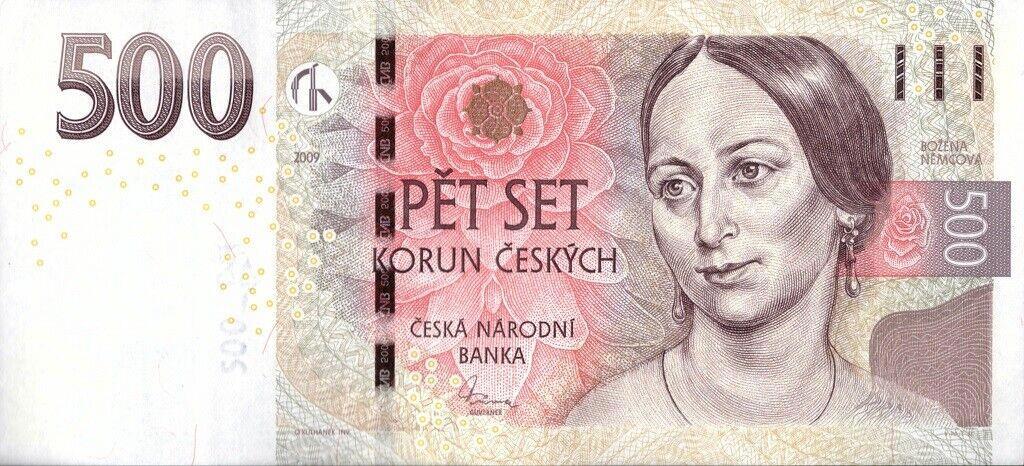 500 крон. Странно, что даже самая знаменитая женщина прославляет не фамилию собственных родителей, а фамилию своего мужа. С изображенной на купюре в 500 чешских крон писательнице первой половины 19-го века Боженой Немцовой получилось даже круче. Её девичьи имя и фамилия - Барбора Панклова.