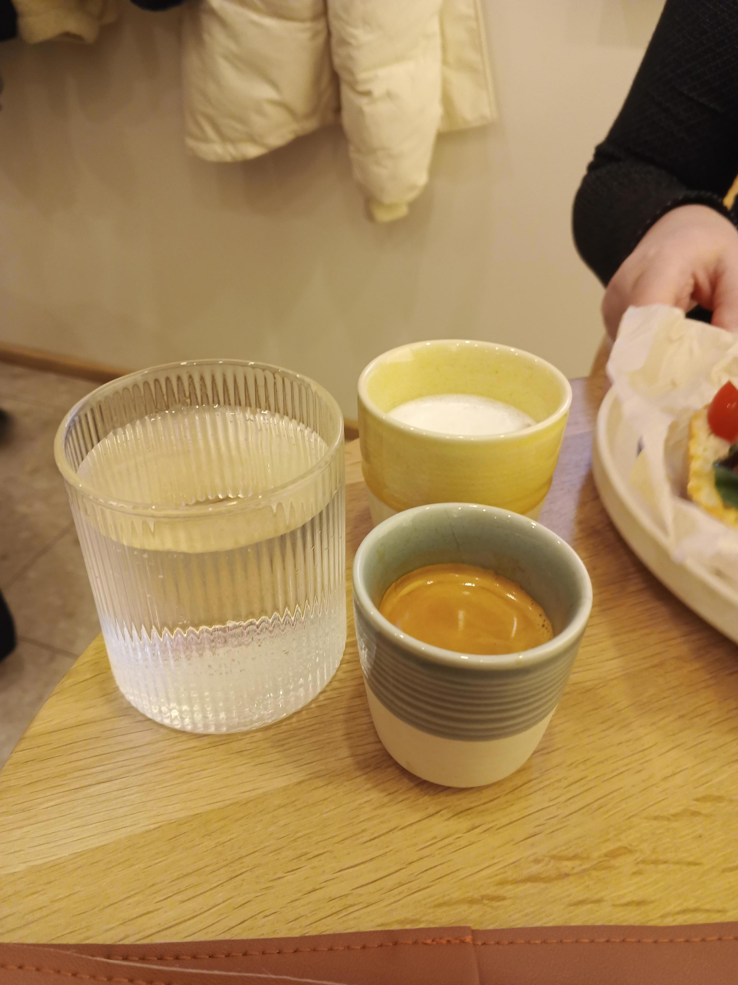 Кофе доппио, молоко и вода. Фото Галины Малышевой.