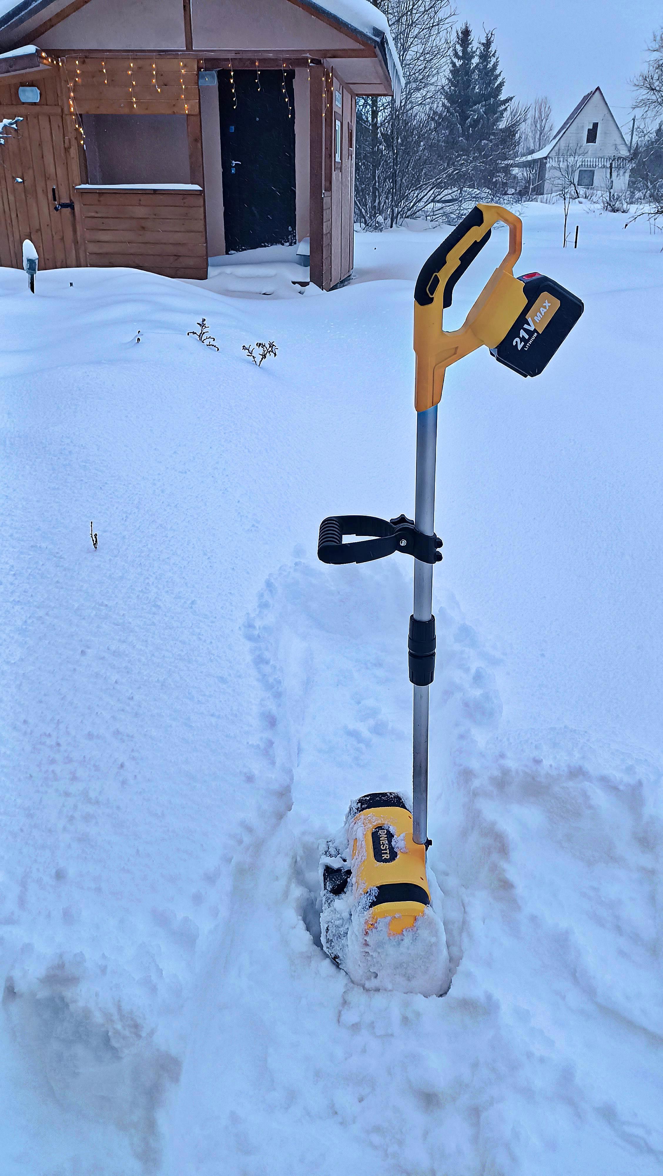 Опробую новый аккумуляторный снегоуборщик.