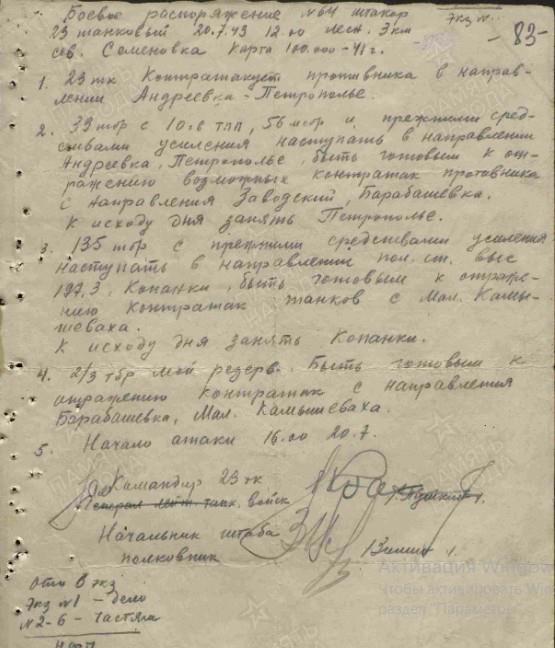 От автора. Затем последовало боевое распоряжение штаба 23 тк.