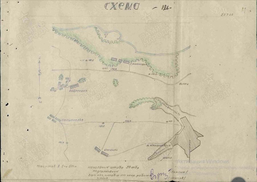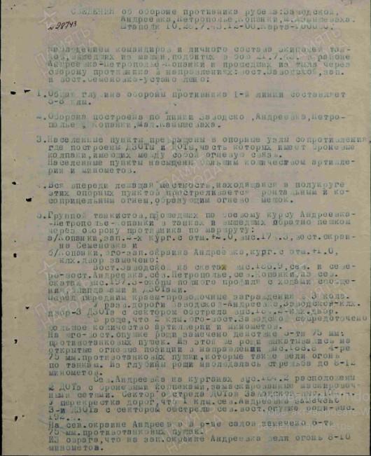 Сведения об обороне противника рубежа: Заводской, Андреевка, Петрополье, Копанки, М. Камышеваха штаба 10 гв. отпп