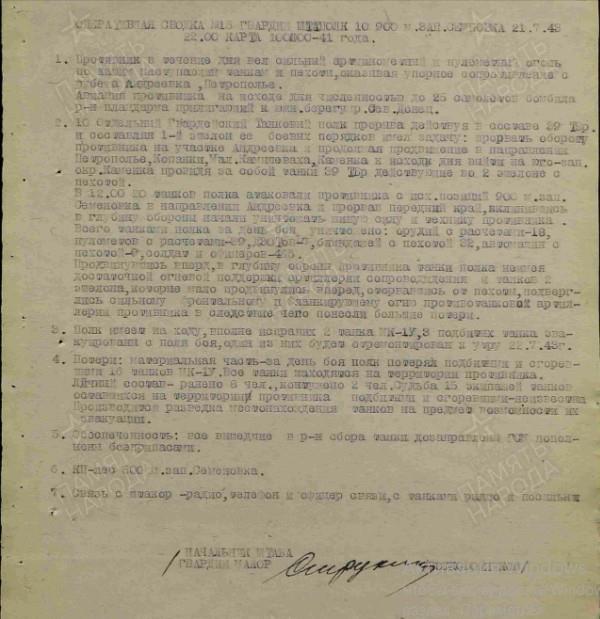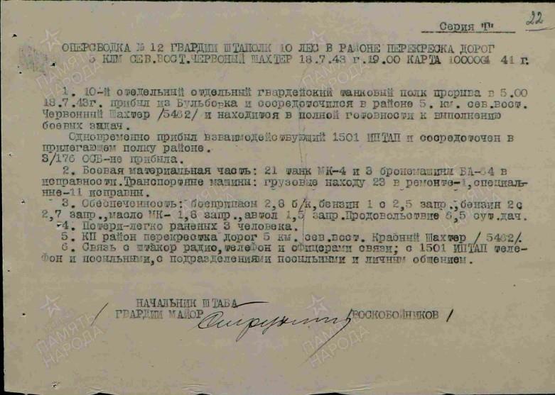 Авторы документа: 10 гв. отпп, гв. майор Воскобойников