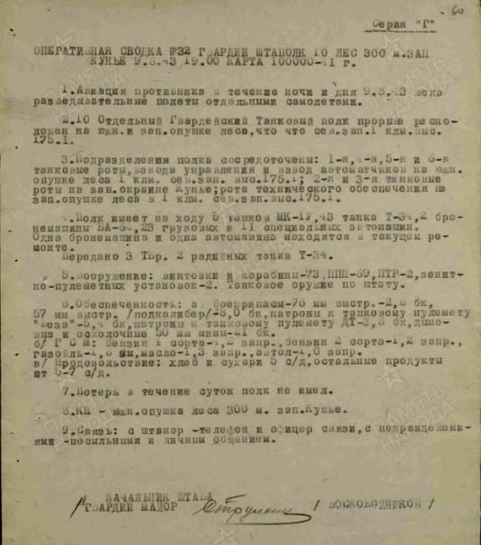 Боевые донесения, оперсводки. № документа: 32, Дата создания документа: 09.08.1943 г.