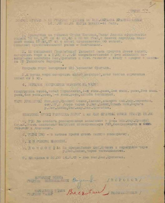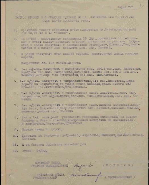 Авторы документа: 10 гв. отпп, гв. подполковник Воронов, гв. майор Воскобойников