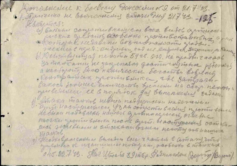 Боевые донесения, оперсводки. № документа: 9, Дата создания документа: 21.07.1943 г.