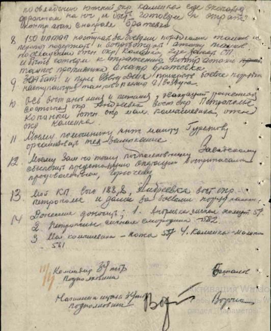 Боевые приказы и распоряжения. № документа: 11, Дата создания документа: 14.08.1943 г.