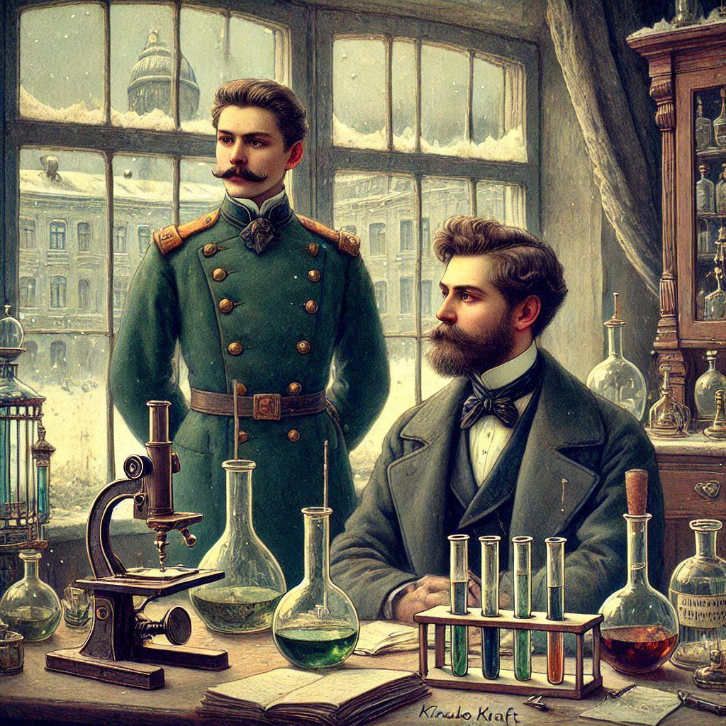 Александр Николаевич Энгельгардт и Николай Николаевич Соколов в своей химической лаборатории: