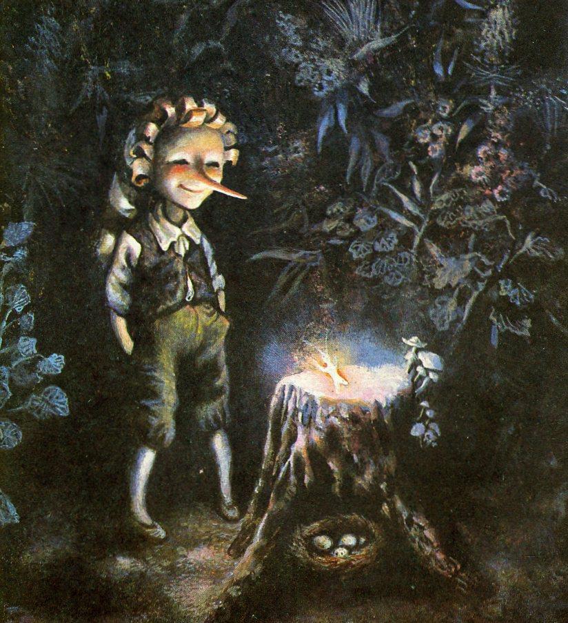 «Сначала мне хотелось оформить книгу вообще, потом - сказки, потом - обязательно русские или братьев Гримм, дальше - уже совершенно конкретную. Кое-что, о чем в свое время мечталось, удалось осуществить: «Пиноккио», «Алису» и «Щелкунчика». Почти каждый книжник делал к ним свои иллюстрации. У художников тоже есть вехи роста, как для актрисы роль Анны Карениной, а для балерины - Жизель. То, что не удалось тогда, сейчас уже невозможно. И время не то, и опыт, и азарт, а главное - восприятие иное: я говорю о реке времени, в которую нельзя войти дважды».