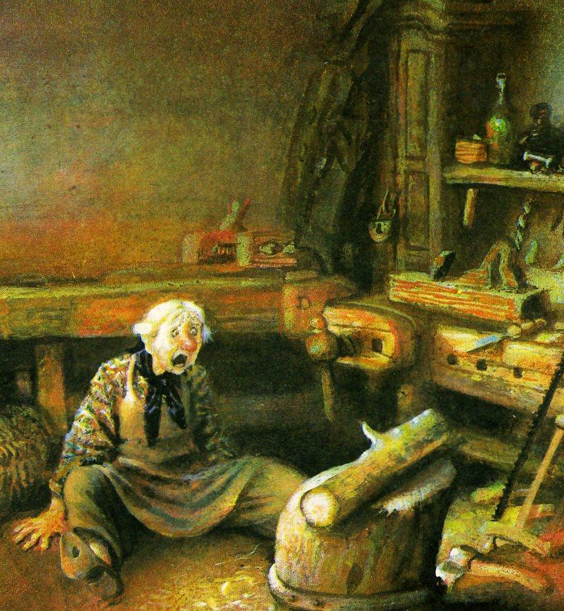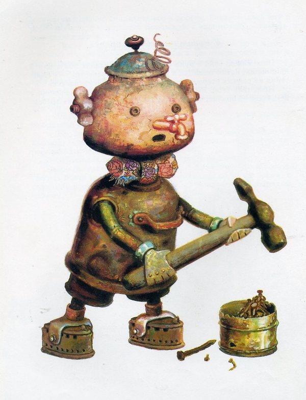 А вот созданный папой Карло железный брат деревянного мальчишки по имени Ферручино. Другие художники, особо не парясь, рисовали задорного мальчишку с чайником вместо головы, а здесь... А здесь даже немалый вес этого создания ощущается, и хочется ржавчину пальчиком растереть.