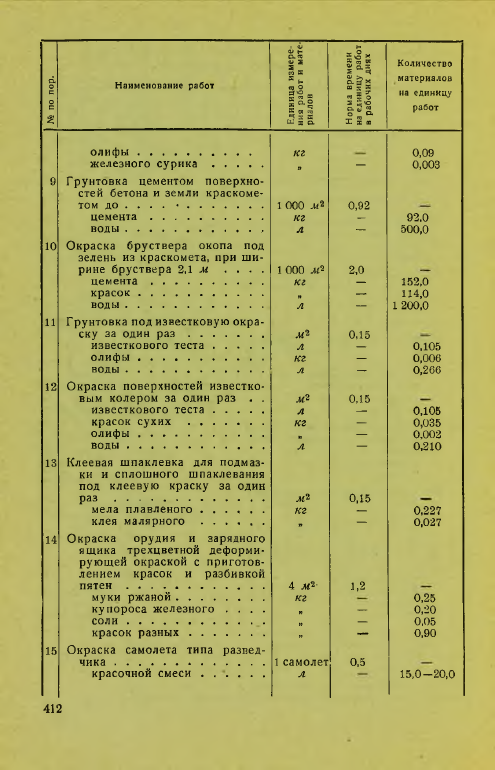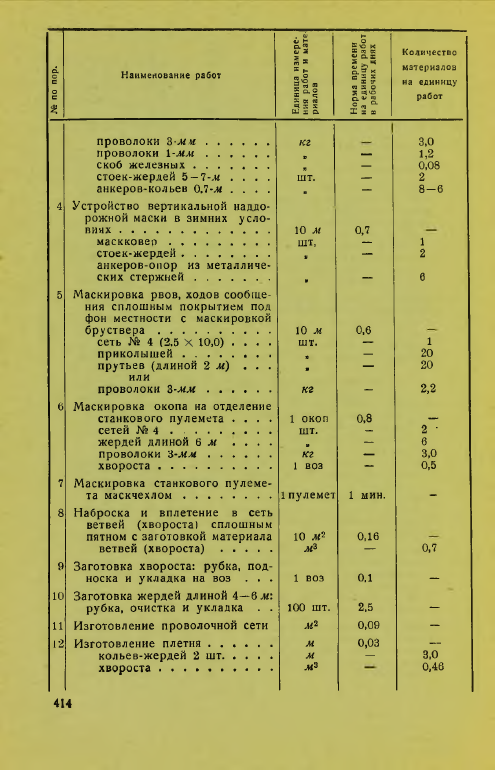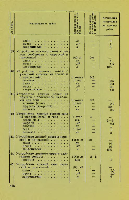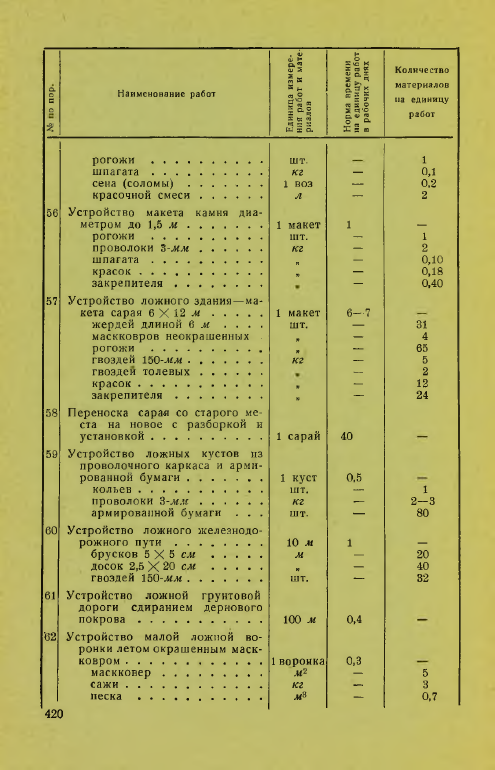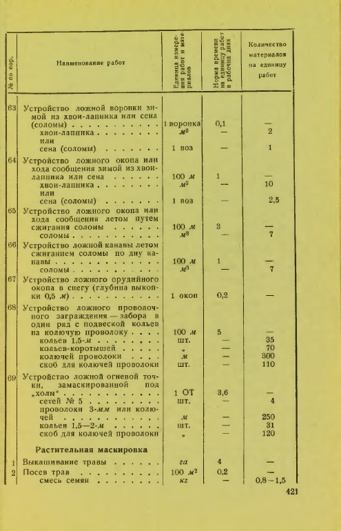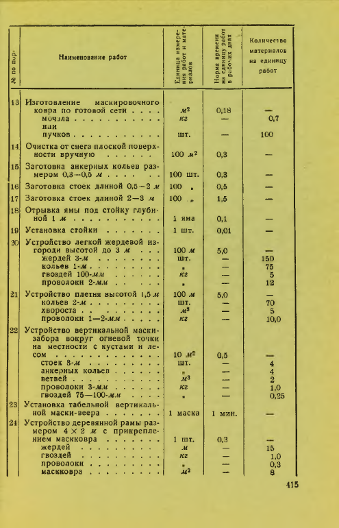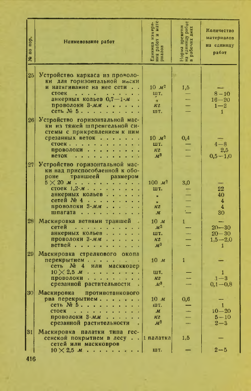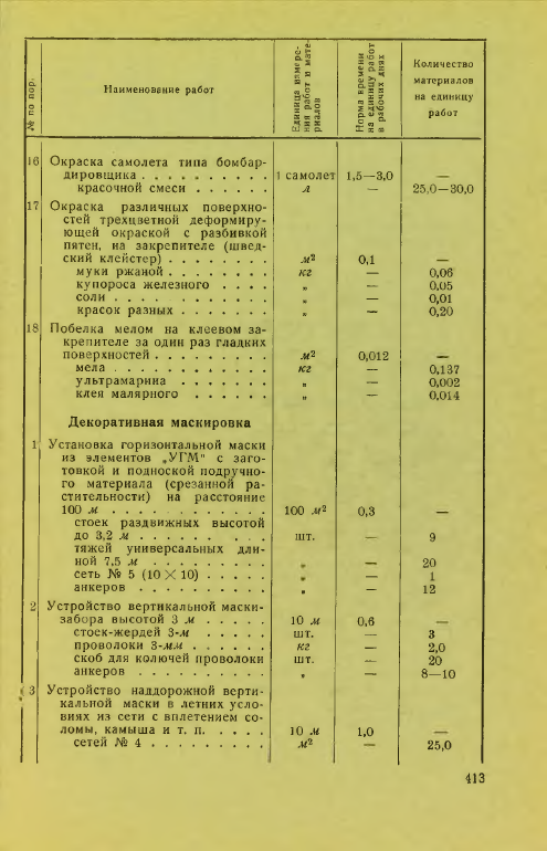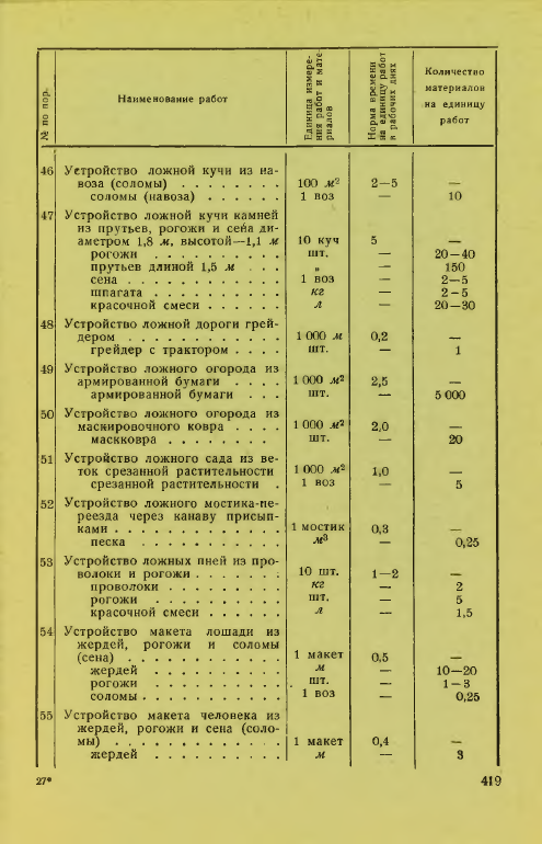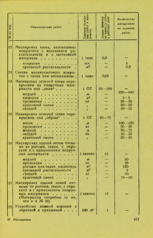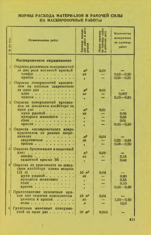 Нормы расхода материалов и времени на маскировочные мероприятия