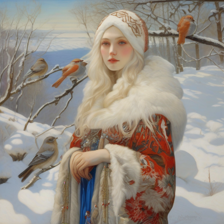 А в другой день – смотрю девочка новенькая появилась. В шубке беличьей, шапке беленькой пушистой. Вся такая нежная и воздушная. Я тоже белокурая, да голубоглазая, но не такая- как грибочек-боровичечек- крепенькая. И шубка с шапкой у меня цигейковые. Голос звонкий- как льдинка звенит. Показала я новенькой, где синичек кормить, семечек насыпала в ладошку ей, она только головой покачала. Боиться что ли. Ну и ладно.