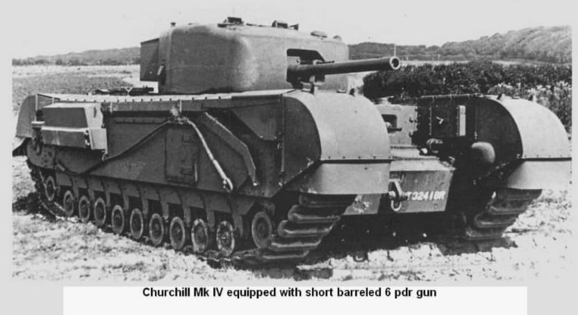 Применяемые на «Черчиллях» британские 2- и 6-фунтовые пушки имели существенный недостаток — в их боекомплект не входили осколочно-фугасные снаряды. Последнее обстоятельство заметно снижало эффективность применения танков поддержки пехоты. В ходе боев в Северной Африке на 200 экземплярах «Черчилль IV» 21-й танковой бригады вместо штатных 6-фунтовок установили американские 75-мм пушки МЗ, спаренные с пулеметами Browning, в маск-установ-ках, позаимствованных у танков «Шер-ман».