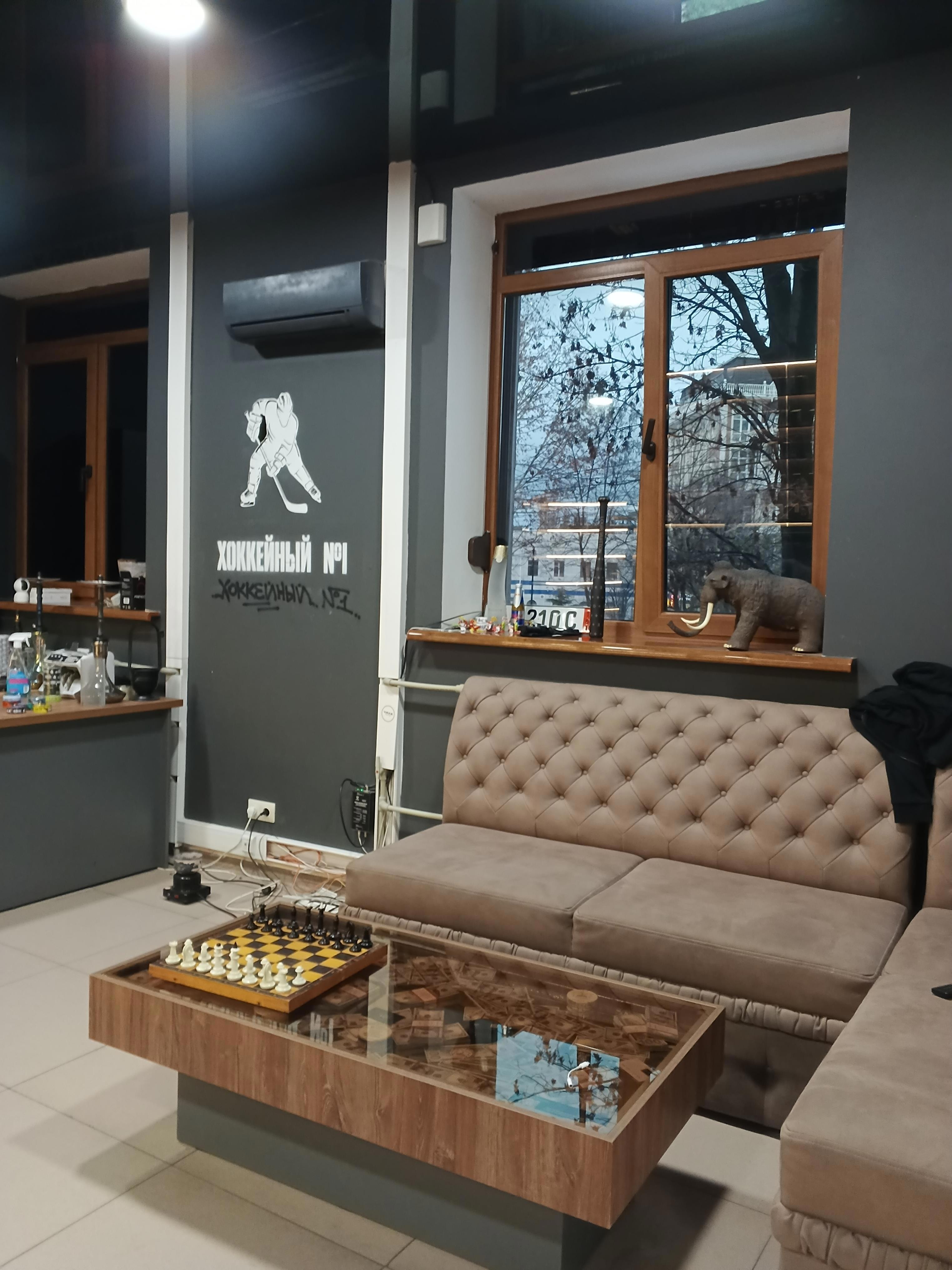 Здесь два зала. Один для любителей чая, кофе, разных закаток (баночки с вареньем, какими-то соленьями и ещё чем-то на витринах), любители кальяна, плюс здесь собираются любители хоккея и других ледовых видов спорта.