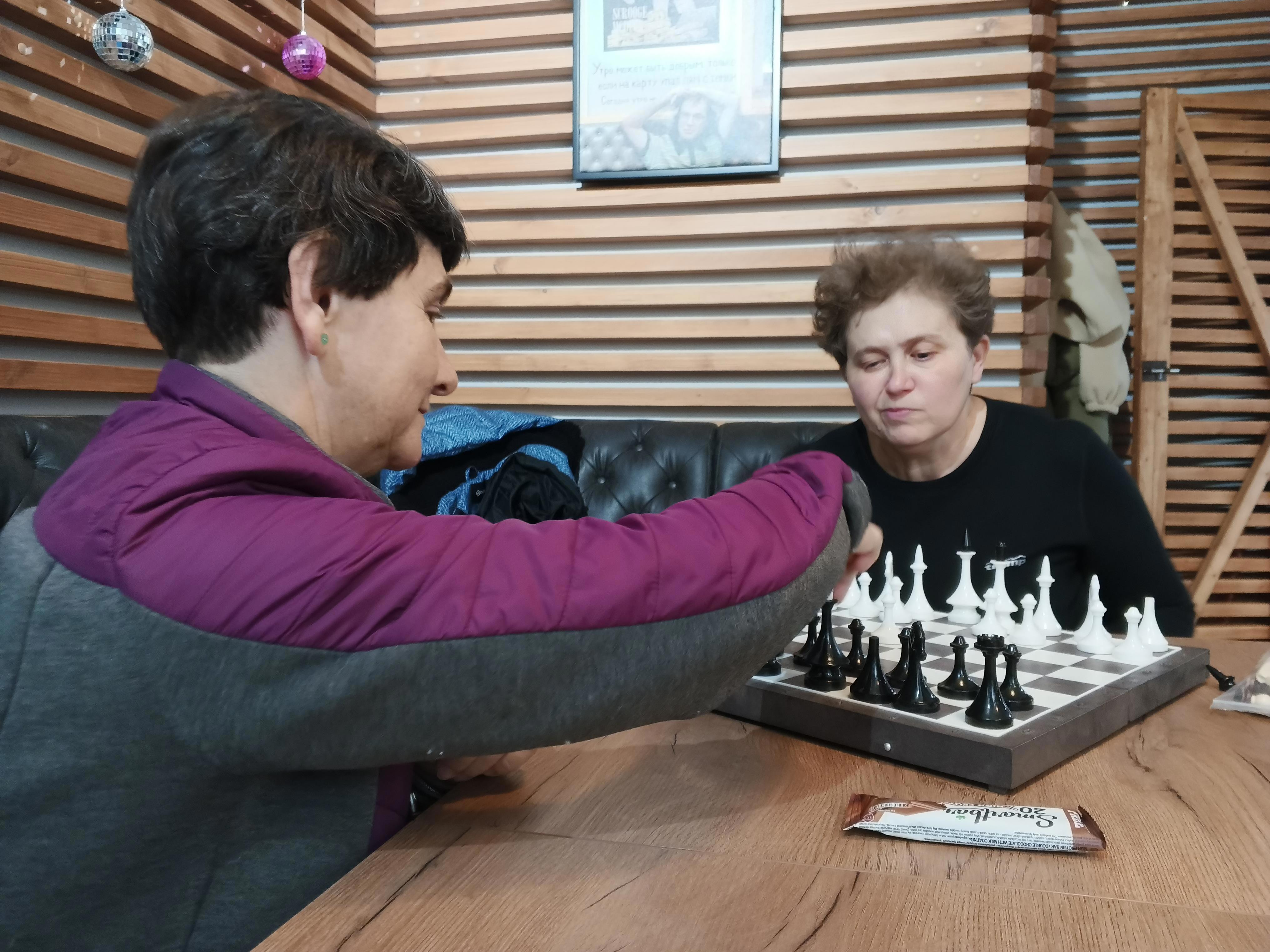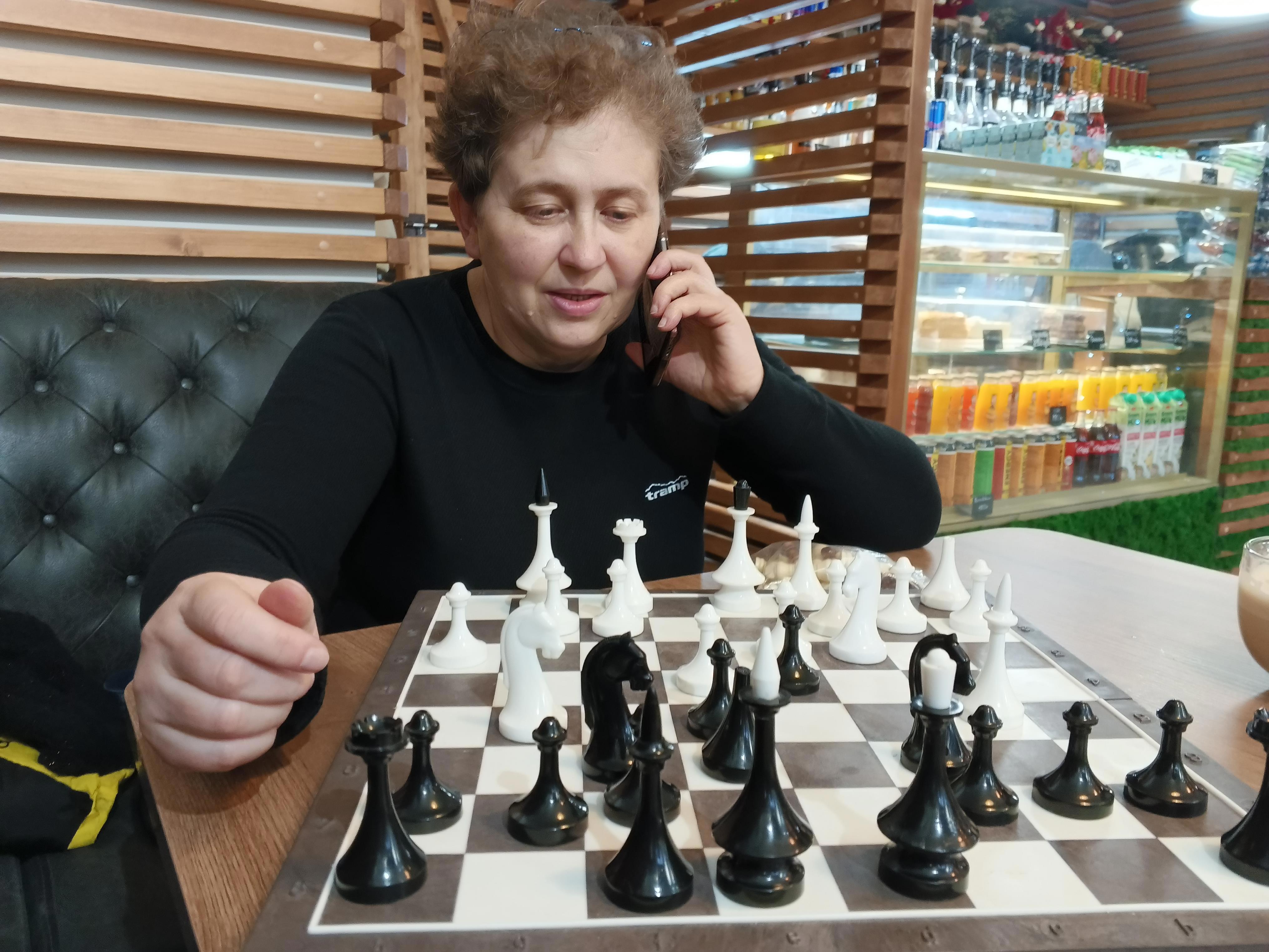 Пока ожидали заказ решили тряхнуть стариной и сыграли в шахматы. Если честно, шахматы я не люблю. До десяти лет играла и неплохо, а потом как отрезало. Мне стало неинтересно. Но Жене очень хотелось. Посему сыграли. Продула я ей после пяти минут игры...