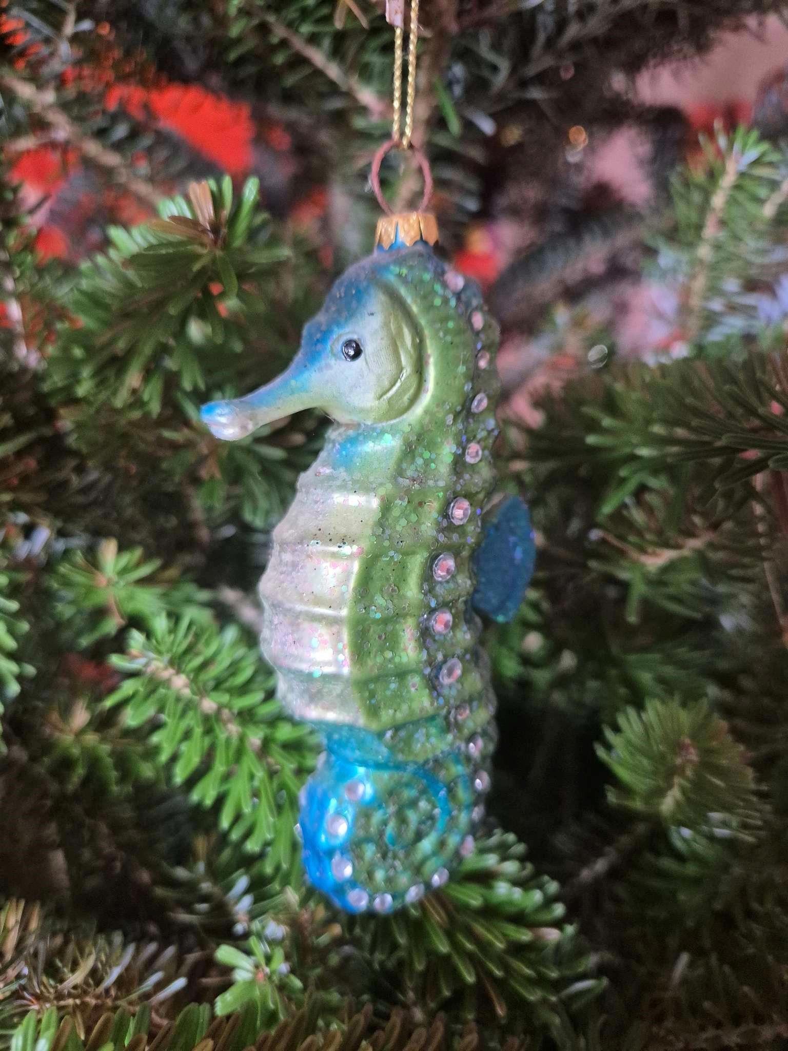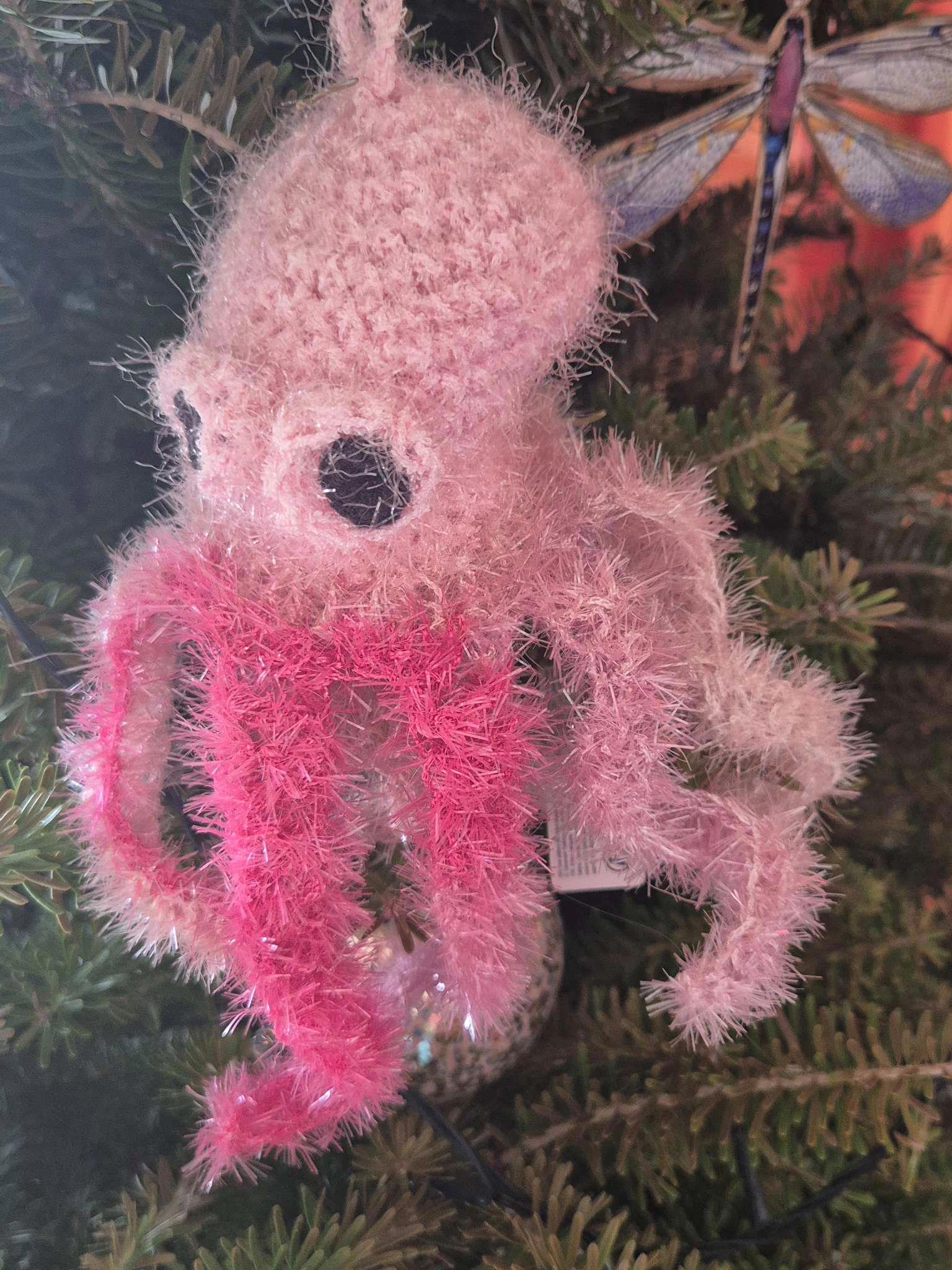 Еще из необычного есть осьминог (на самом деле он блестит, у него нить такая), из той же серии черепашка и краб елки не дождались - не так хороши. Когда покупала, то их позиционировали и как игрушки для елки и как ...подарочные губки для мытья посуды. Ну жалко же.