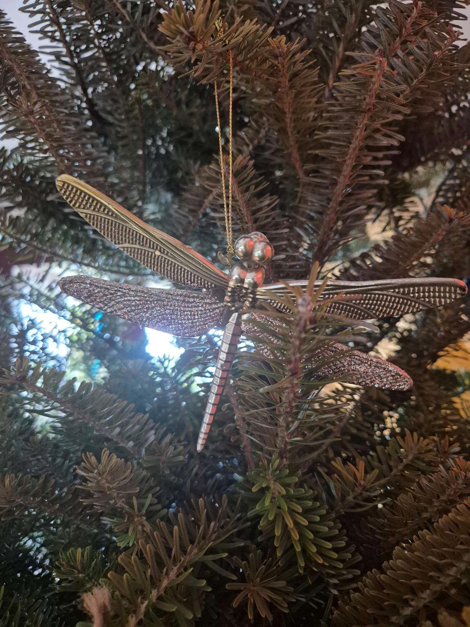 Я когда-то собирала крокодилов для елки (после того, как завязала с морскими коньками), показывала тут https://author.today/post/589921, но их стали производить в бешенном количестве, собирать, когда много, не интересно. Теперь у меня ...стрекозы. На фото не все мои стрекозы. Акриловые (как колибри или рыба выше) хрупкие, у них отбиваются крылья. И они - неправдоподобны. К металлической приклеила пластиковое тельце - ну не нравилось, что плоская. А к "брульянтовой" претензии - падает и вылетают камешки (розовых оттенков цела, а фиолетовая потеряла камешки). У меня таких разных несколько, а еще есть бабочка (заржавела! потому что висела на улице в качестве солнечных зайчиков пускателя). Надо, надо! искать достойную замену крокодилам. Стрекозы так не радуют глаз.