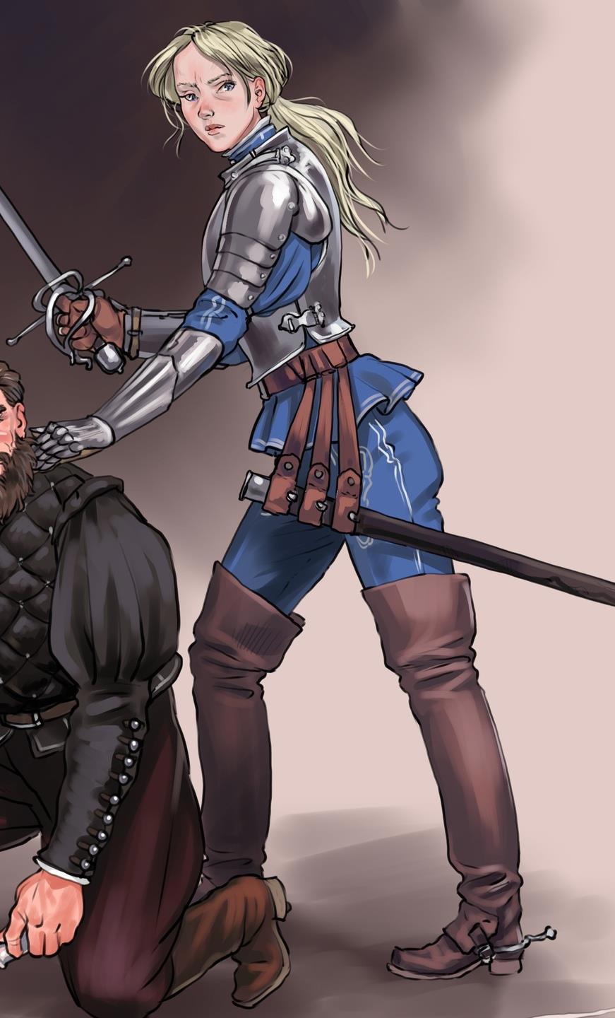 Человек-северянка, 24 года, 184 см. роста. Одна из восьми личных гвардейцев герцогини Кристины Второй Эльвартской, нештатный медик гвардии.