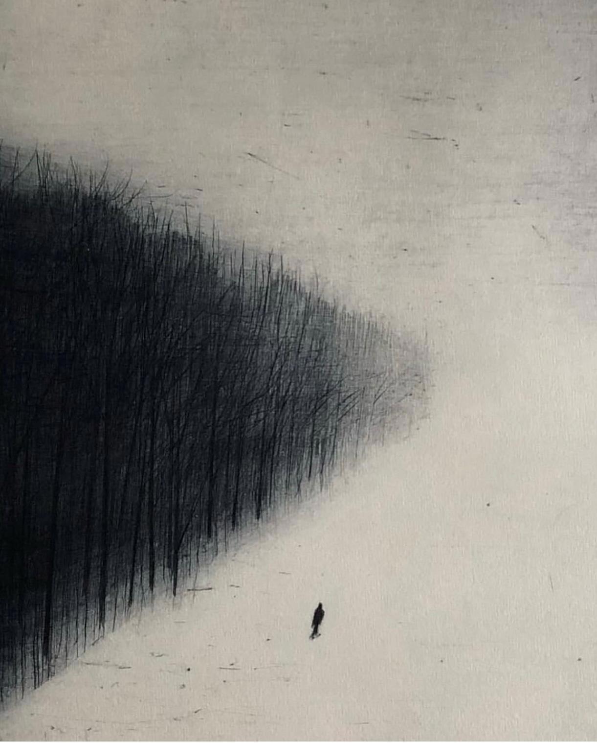 В качестве художественного оформления использована картина талантливейшей художницы Кати Ланг. Завораживающий снежный пейзаж графического одиночества.
