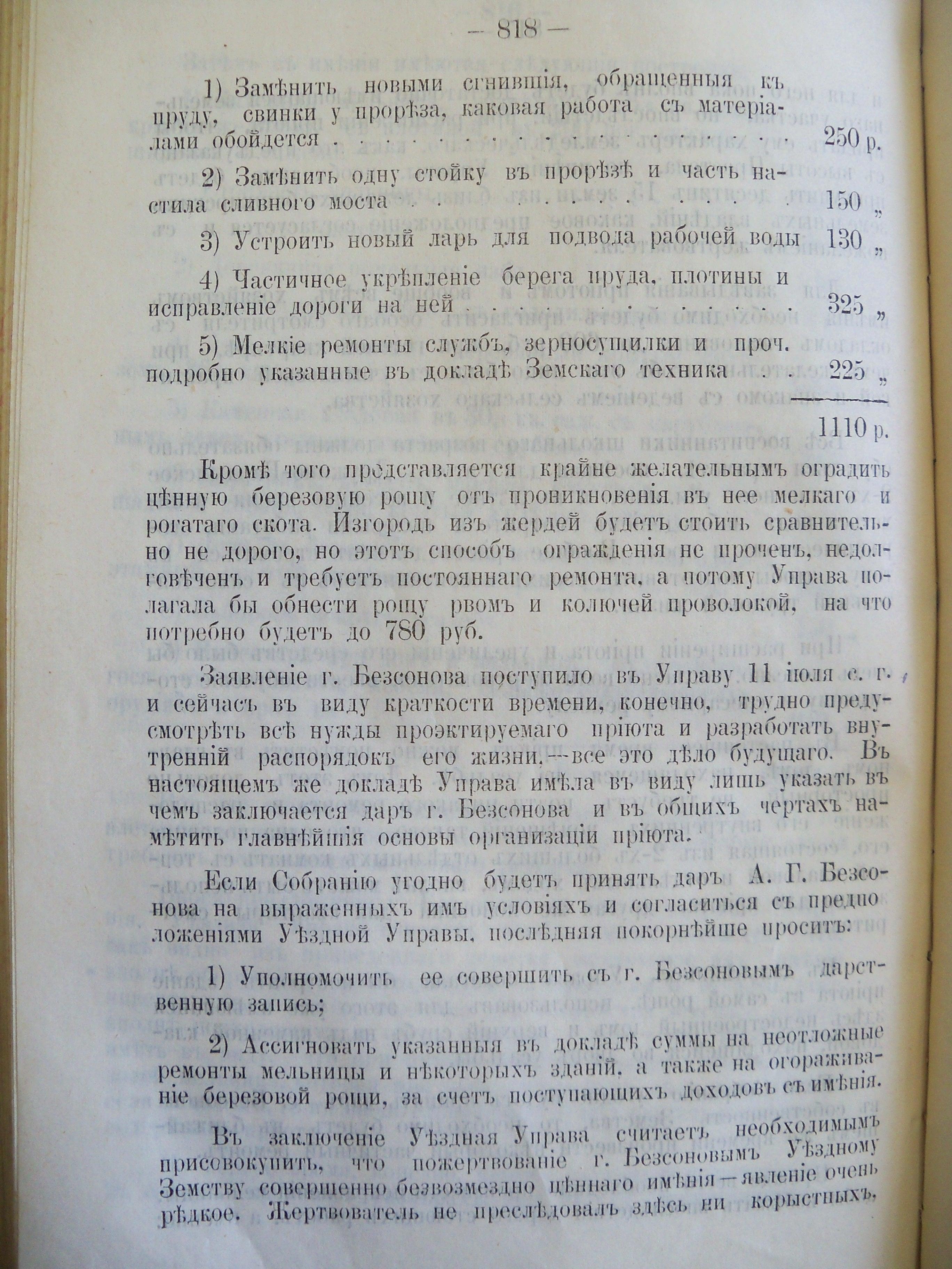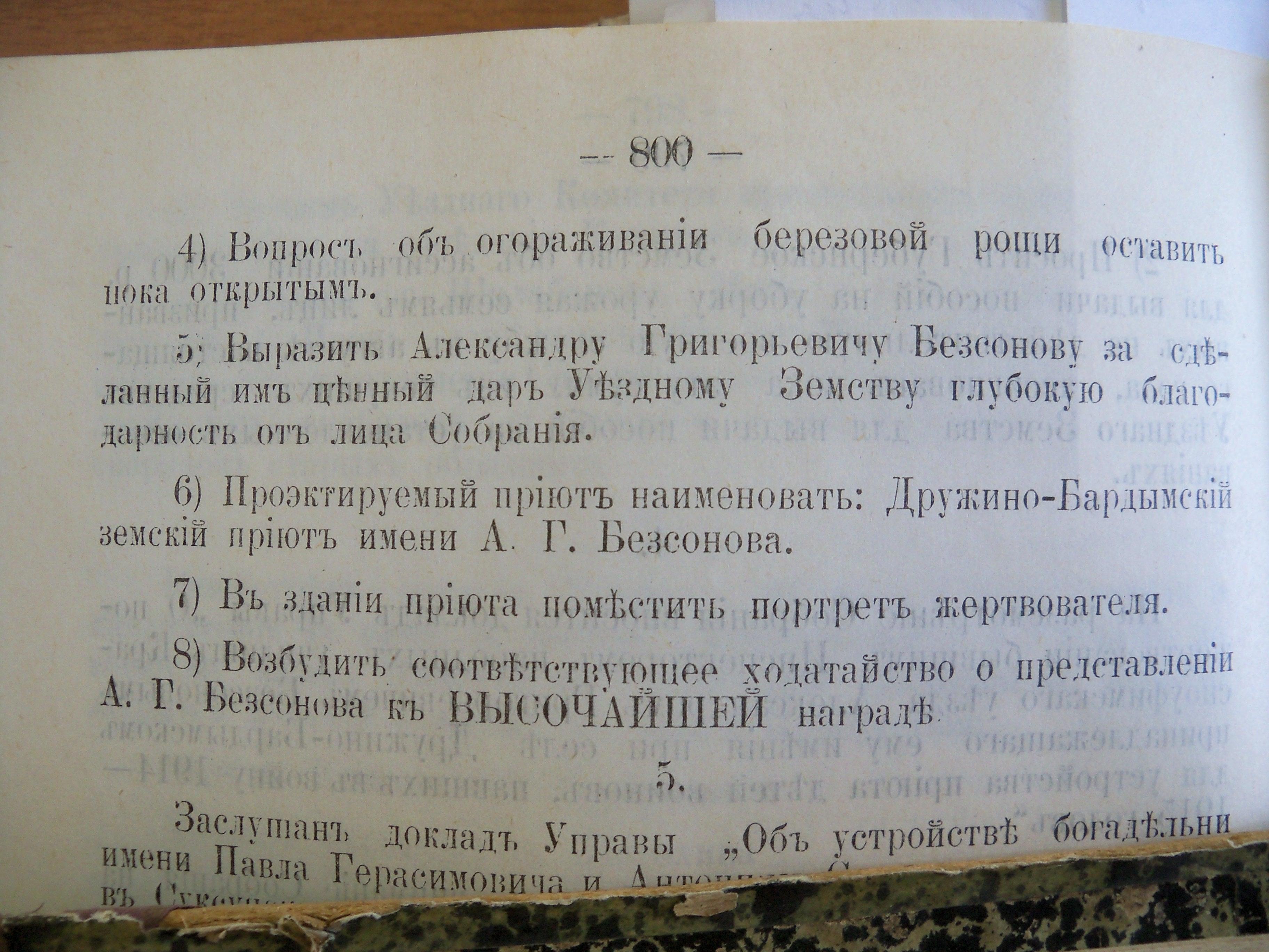 Дума Красноуфимского уезда весьма щедрый дар бывшего инспектора народных училищ приняла, решила создать приют и на первых порах разместить там дюжину воспитанников. Александра Григорьевича Безсонова предложили наградить.