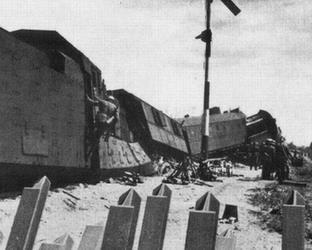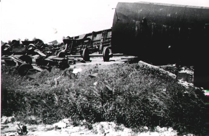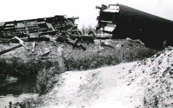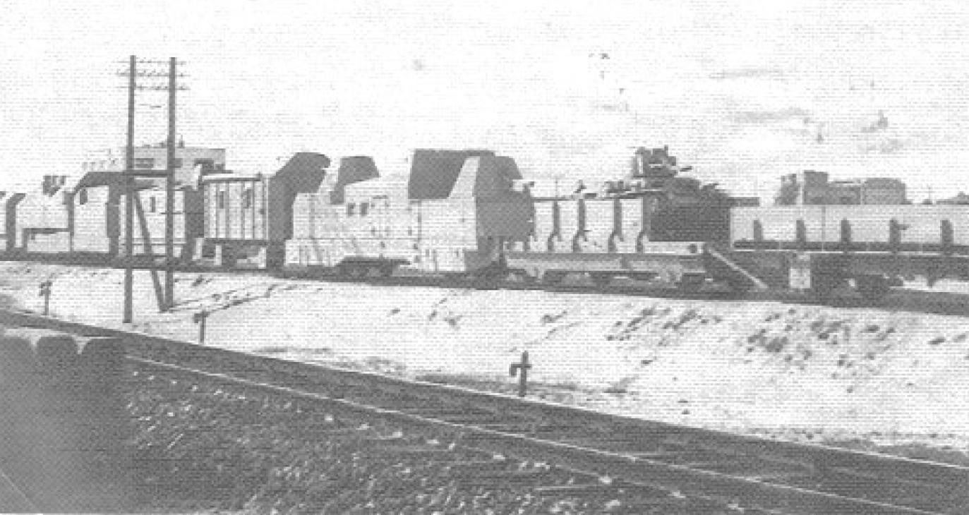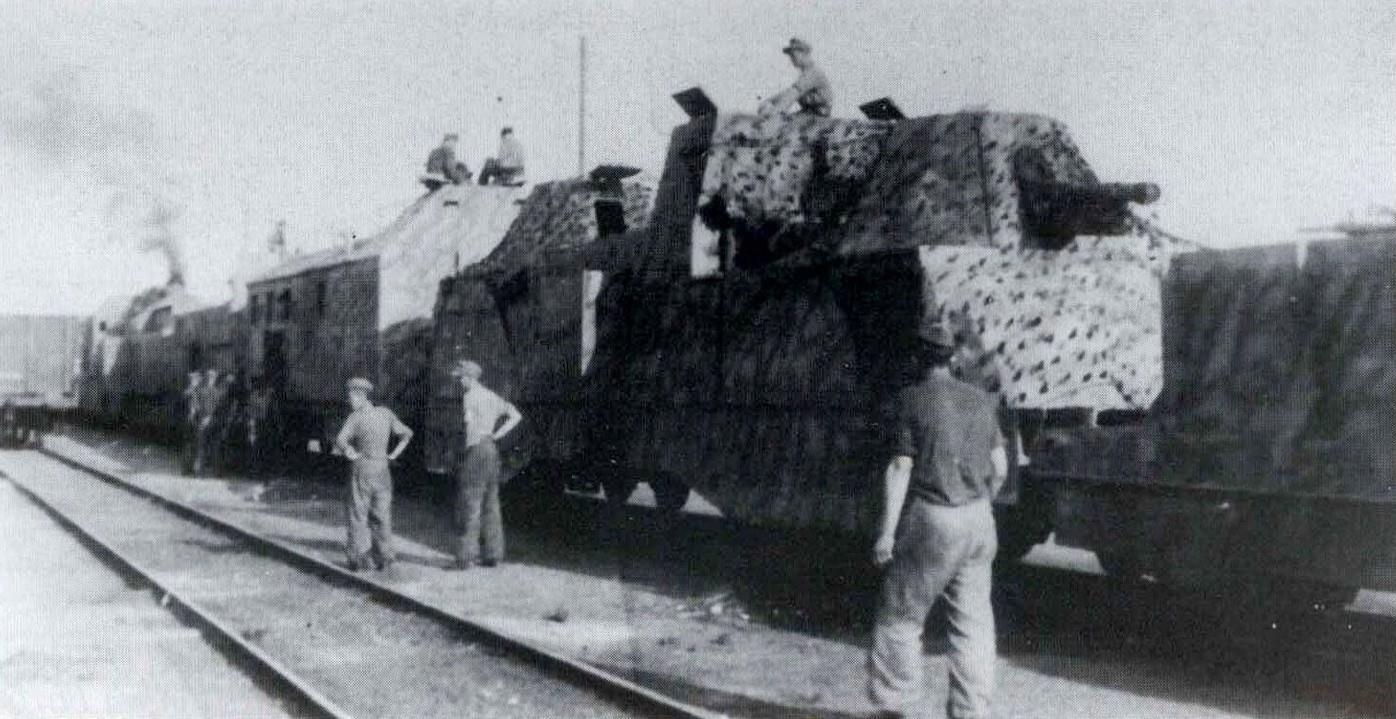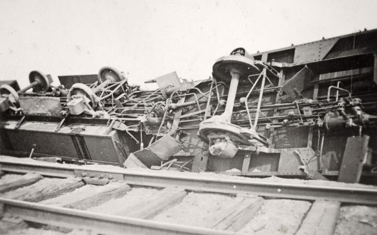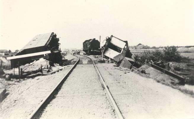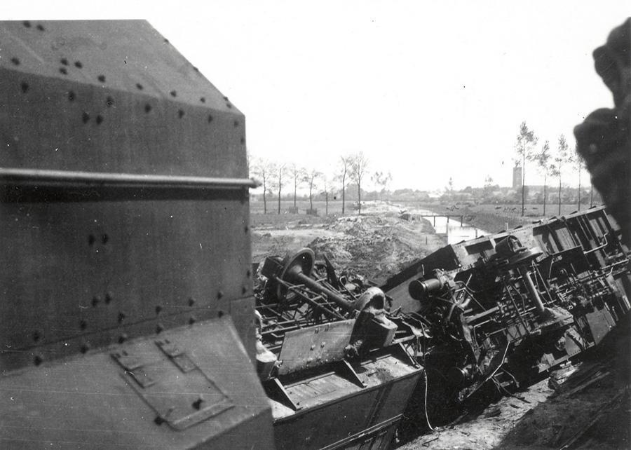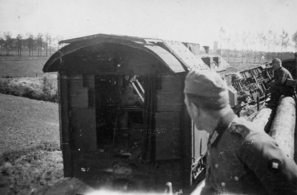 Немецкий бронепоезд №1 (Panzerzug 1 / Transportsicherung Zug III./481), сошедший с рельс вследствие подрыва железнодорожного полотна.