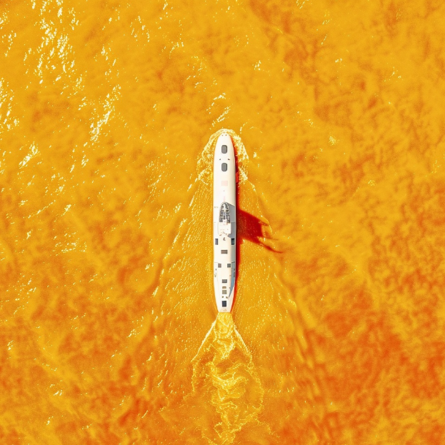 Желтое, но не солнечное, да еще и голубизны прилепил (ну да сложно ИИ объяснить, что океан может не быть голубым). Конкретно эта генерация подсказала идею: мне нужен вид сверху.