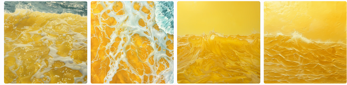 Возвращаемся к проверке того, как видит ИИ. Я решил уйти от Солнца и просто описывать желтый океан. Добавил слова для детализации: реалистично и детально. Иногда это бывает полезно.