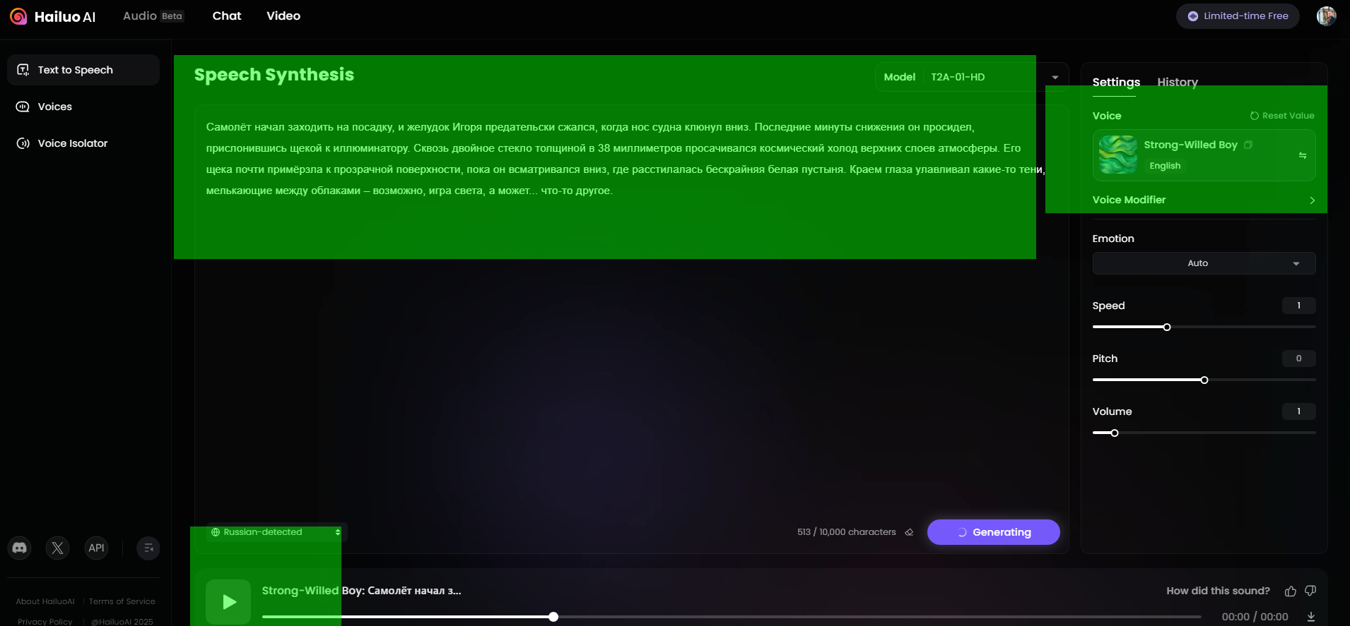 И вот, в один из таких моментов, я наткнулся на сайт Hailuo.ai. "Озвучка текстов? — подумал я. — А почему бы и нет? Может, голос робота станет тем самым толчком, который мне нужен!"