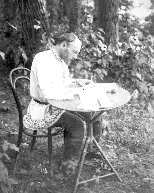 И весь старик перед вами живёт. Художник сумел увидеть его, сумел выделить в своих впечатлениях от него то, что его отличало от всех других гостей. В чеховской «Чайке» начинающий писатель говорит о беллетристе Тригорине: «У него на плотине блестит горлышко разбитой бутылки, и чернеет тень от мельничного колеса — вот и лунная ночь готова. А у меня — трепещущий свет, и тихое мерцание звёзд, и далёкие звуки рояля, замирающие в тихом ароматном воздухе... Как это мучительно».