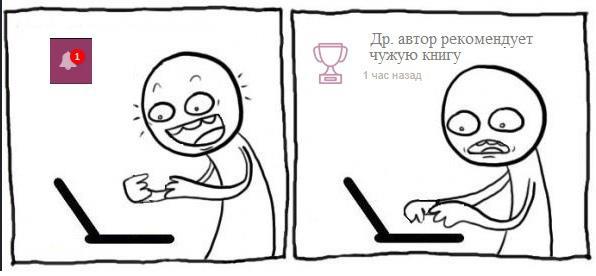 Пояснение: это на ЛитНет была система рекомендашек - автор раз в сутки мог порекомендовать всем своим читателям книгу, она появлялась у них в уведомлениях вот с такой надписью. А ты сидел и ждал комментариев к своим...
