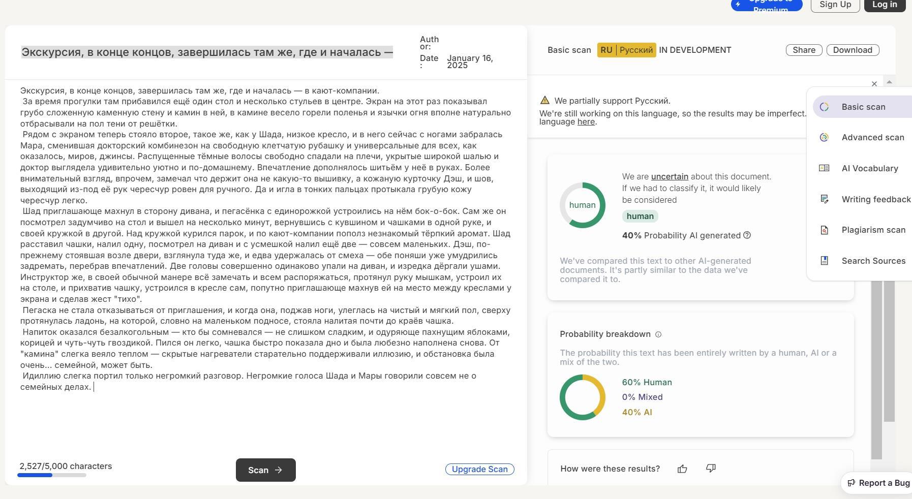 Есть сайт https://app.gptzero.me/, который должен по тексту определять кто его написал.