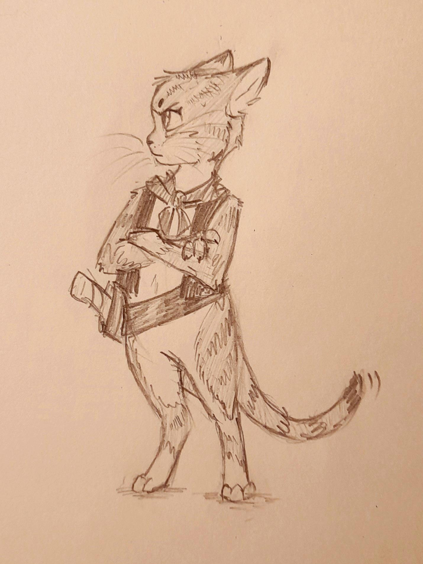Автор: Клапка СоваБыстрый скетчик антро Феи. Не хотелось превращать её в полноценную антро, мне больше нравится вариант того что она всё ещё размером с обычную кошку, поэтому нож такой большой.